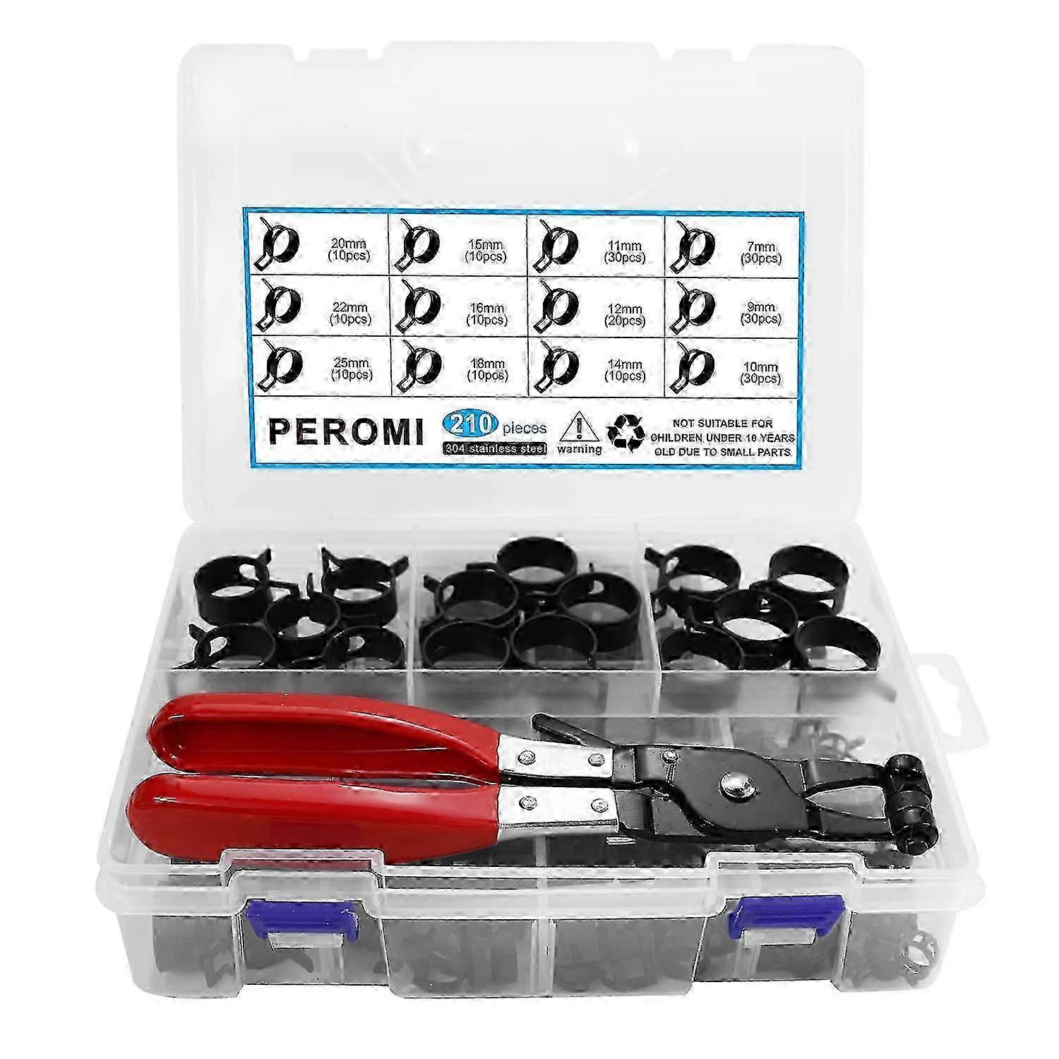 Hot 210 Pcs Spring Band Type Hose Clamps for Fuel Line 7-25mm