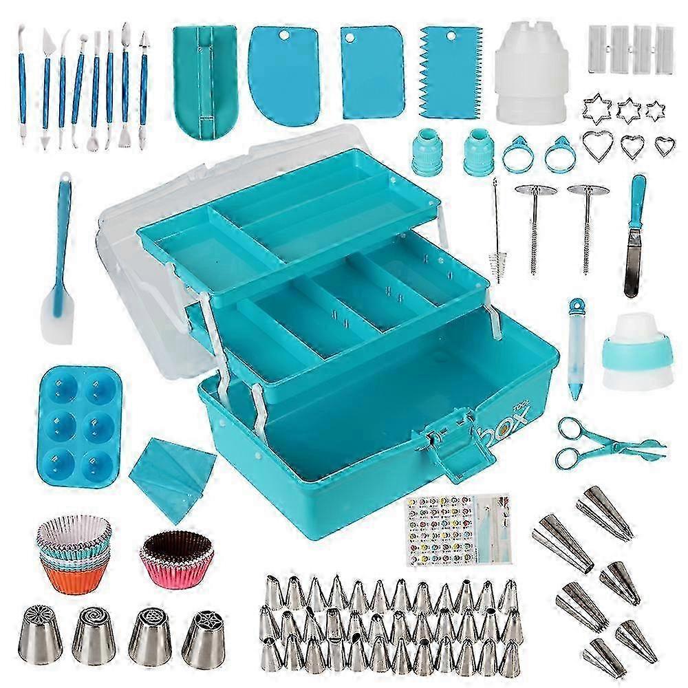 Hot Cake Decorating Mouth Set Blue Folding Box Baking Tools Kit Gift With Three-layer Storage 236 Pcs Baking Supplies Sets