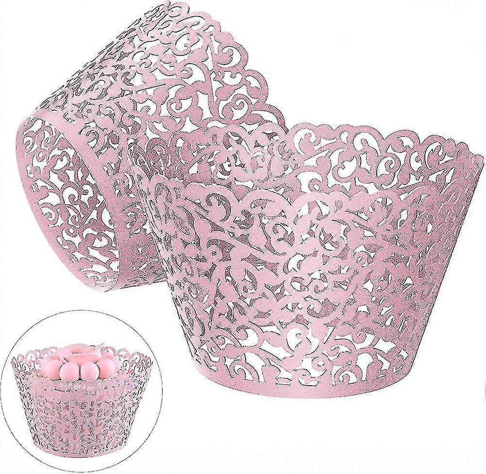 Pearl Filigree Cupcake Wrappers - 50 Pcs Wedding Baking Cups with Lace Design for Party Gifts
