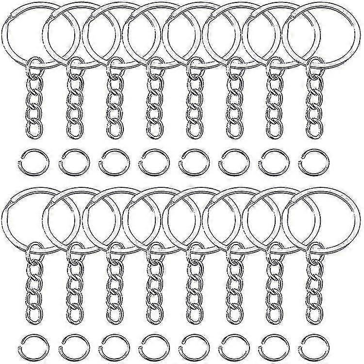 Keyring Blanks with Link Chain and Jumps Rings - 50 Pcs Metal Key Rings with Split Design