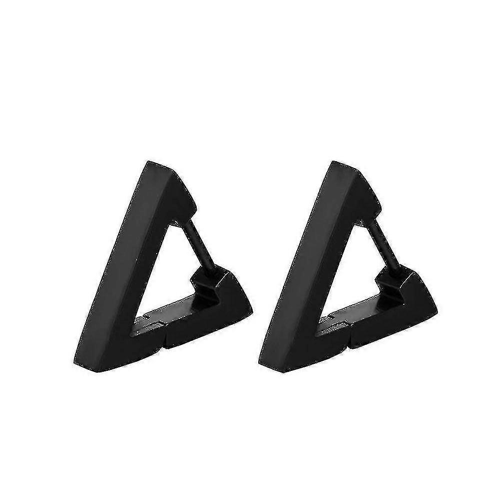 (Triangle-Black) Stainless Steel Geometric Piercing Stud Earring for Women & Men - Triangle/Square/Hexagon Shapes