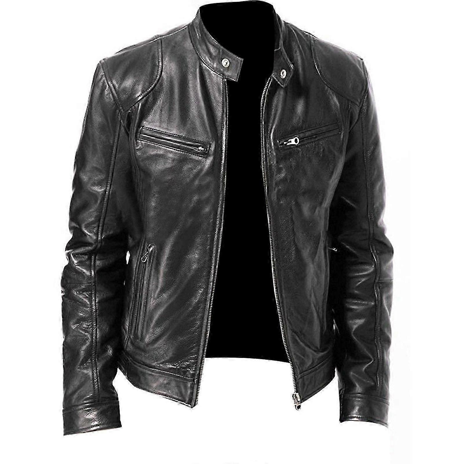 Men's Casual Leather Jacket Front Zipper Closure Vintage Outwear for Working Driving Travel Outfitx