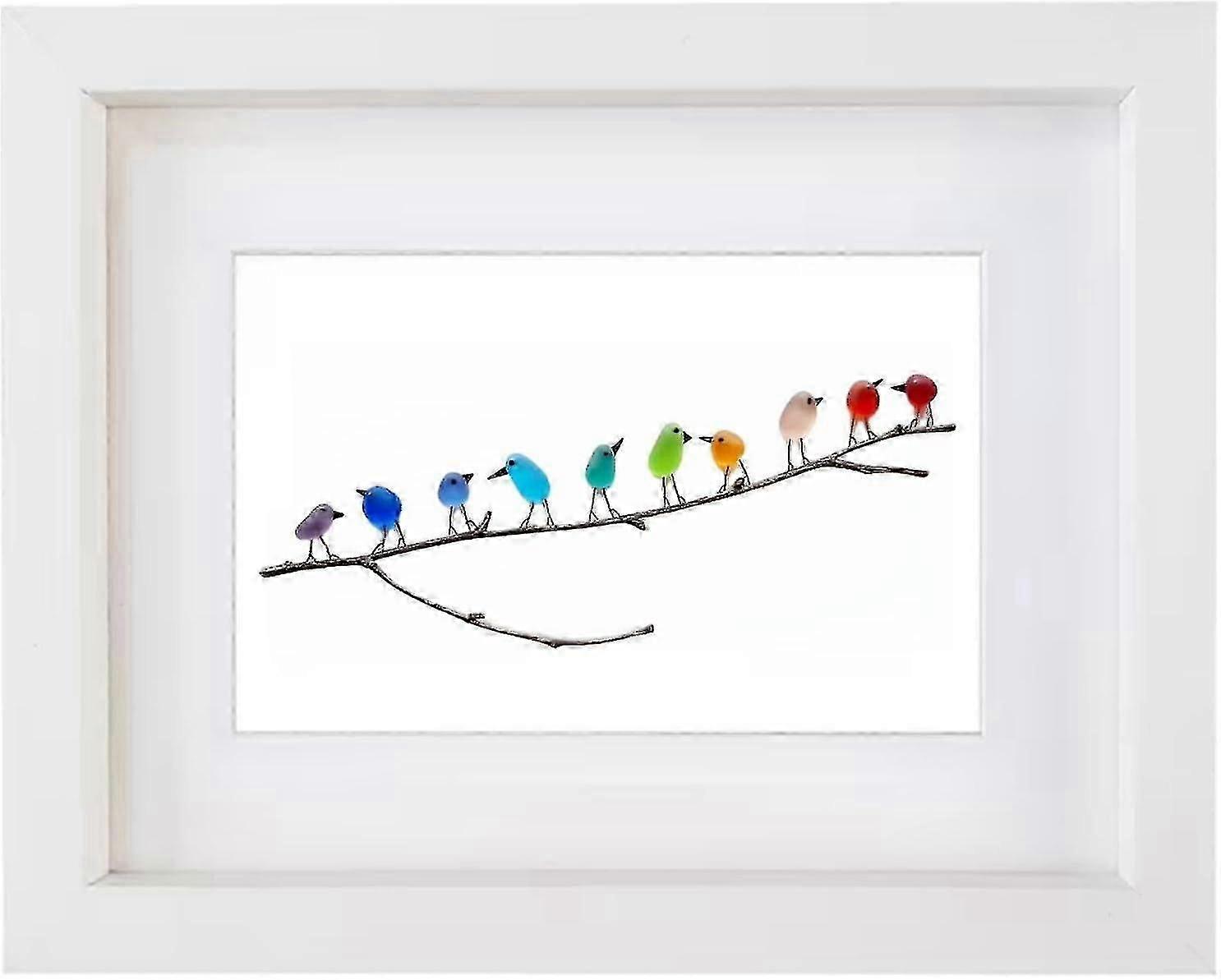 8-12PCS Sea Glass Rainbow Birds, Sea Glass Art, Sea Glass Driftwood Picture, Rainbow Bird Wall Decor Unique-Good