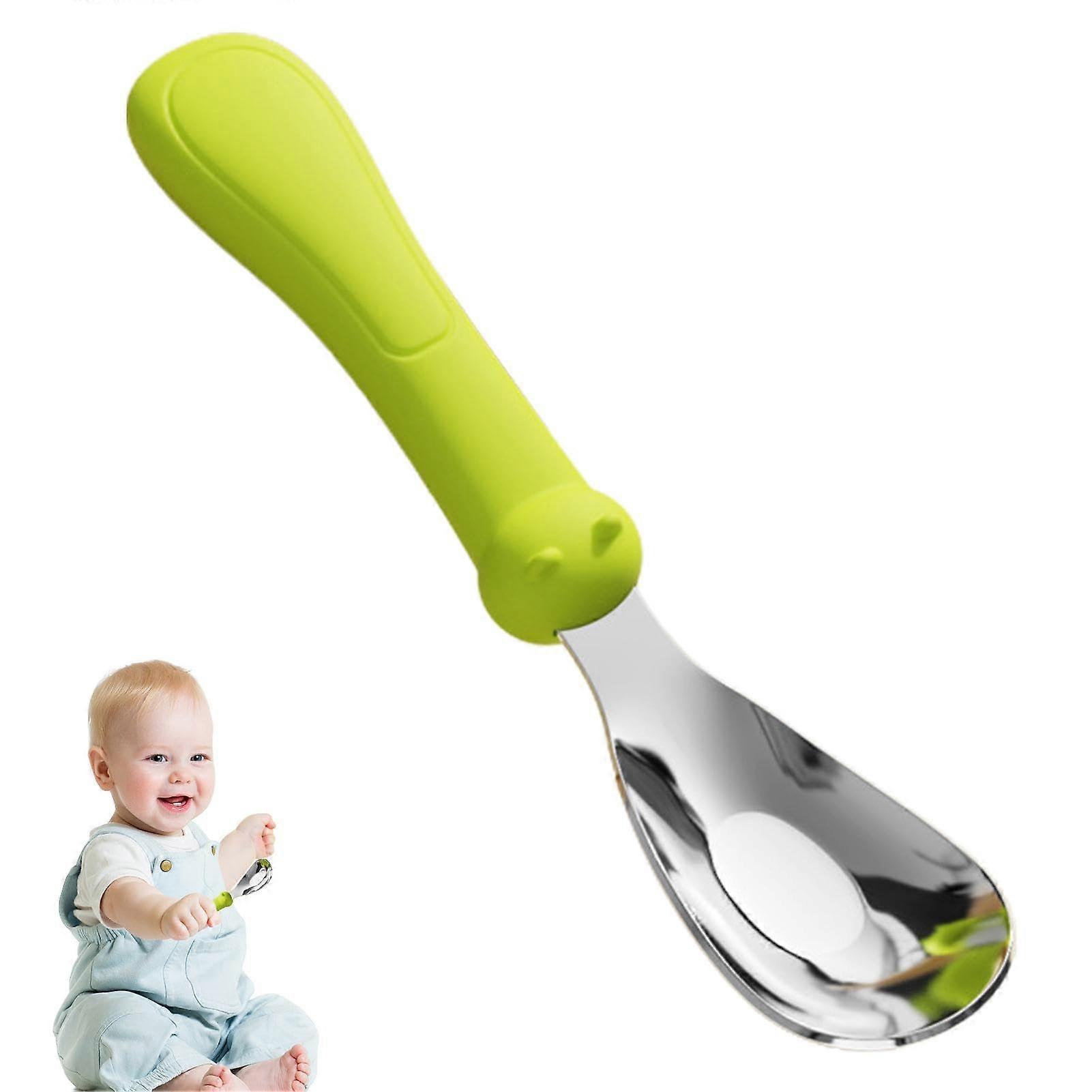 Stainless Steel Baby Spoon Silicone Handle Baby Food Spoon LED Weaning Accessories Green