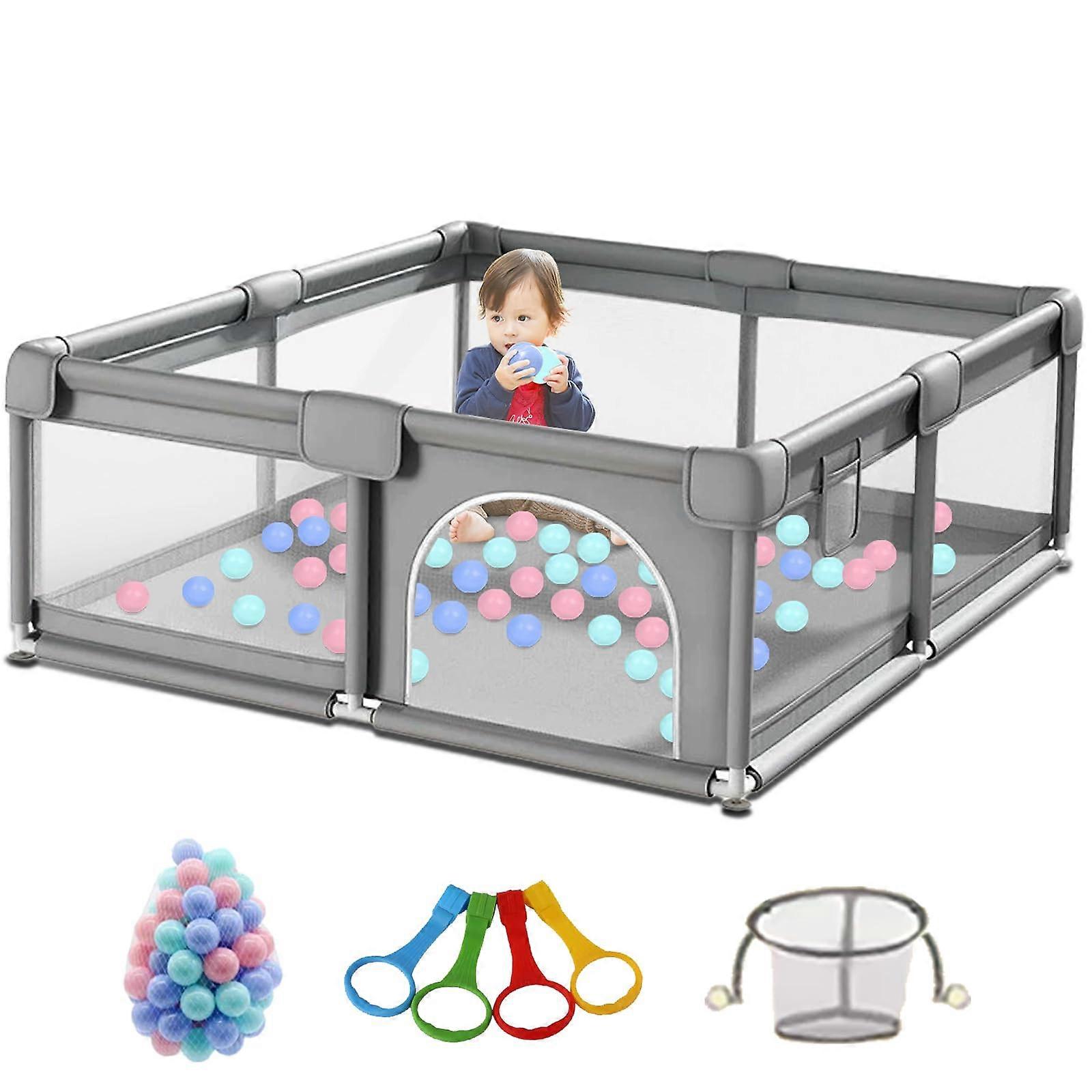 Foldable Baby Playpen With Ball Storage Bag And PullUp Rings, Infant Play Area In Grey, 160x120cm