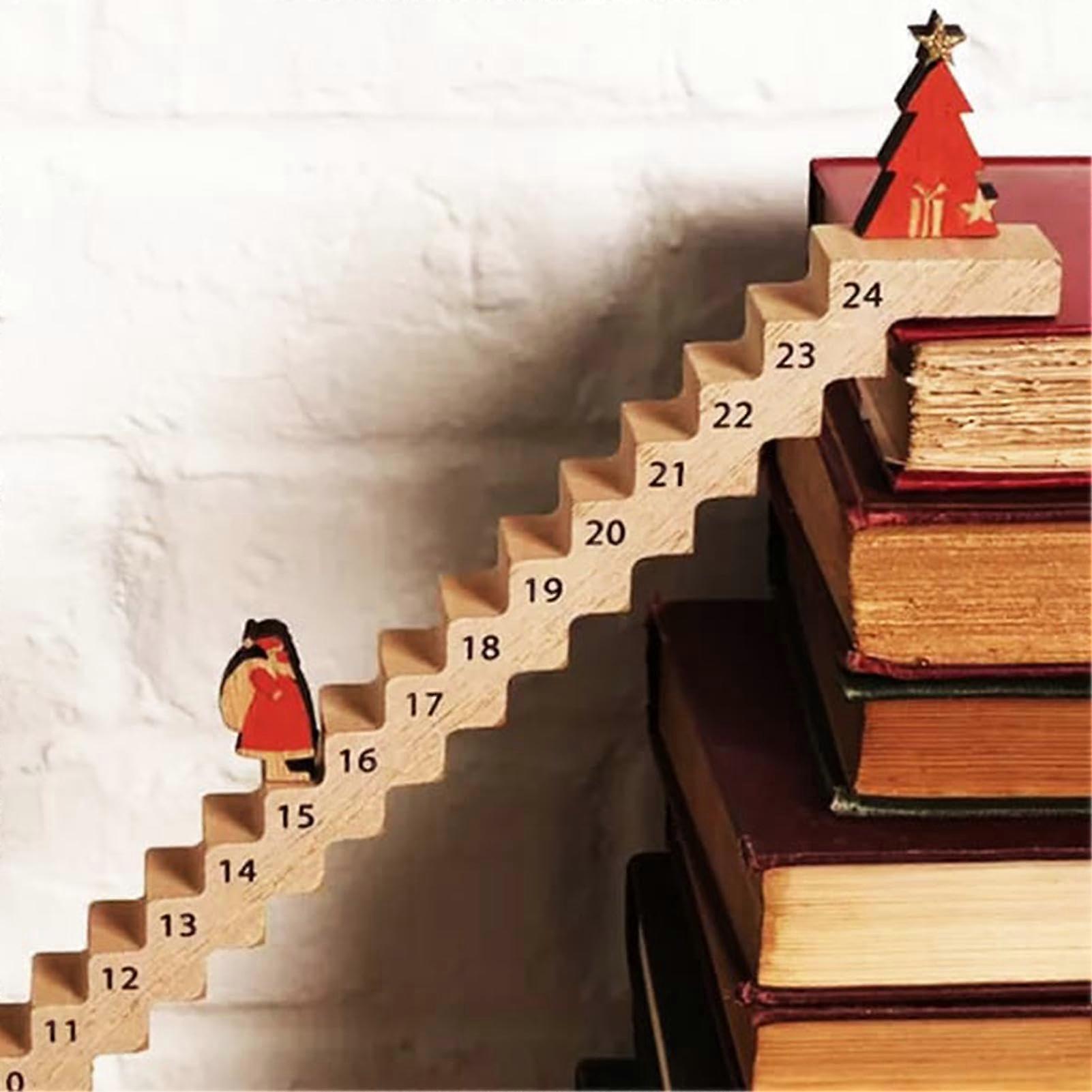 Climbing Santa Wooden Countdown Calendar, Traveling Santa Staircase Decor, 40cm Tabletop Home Decor