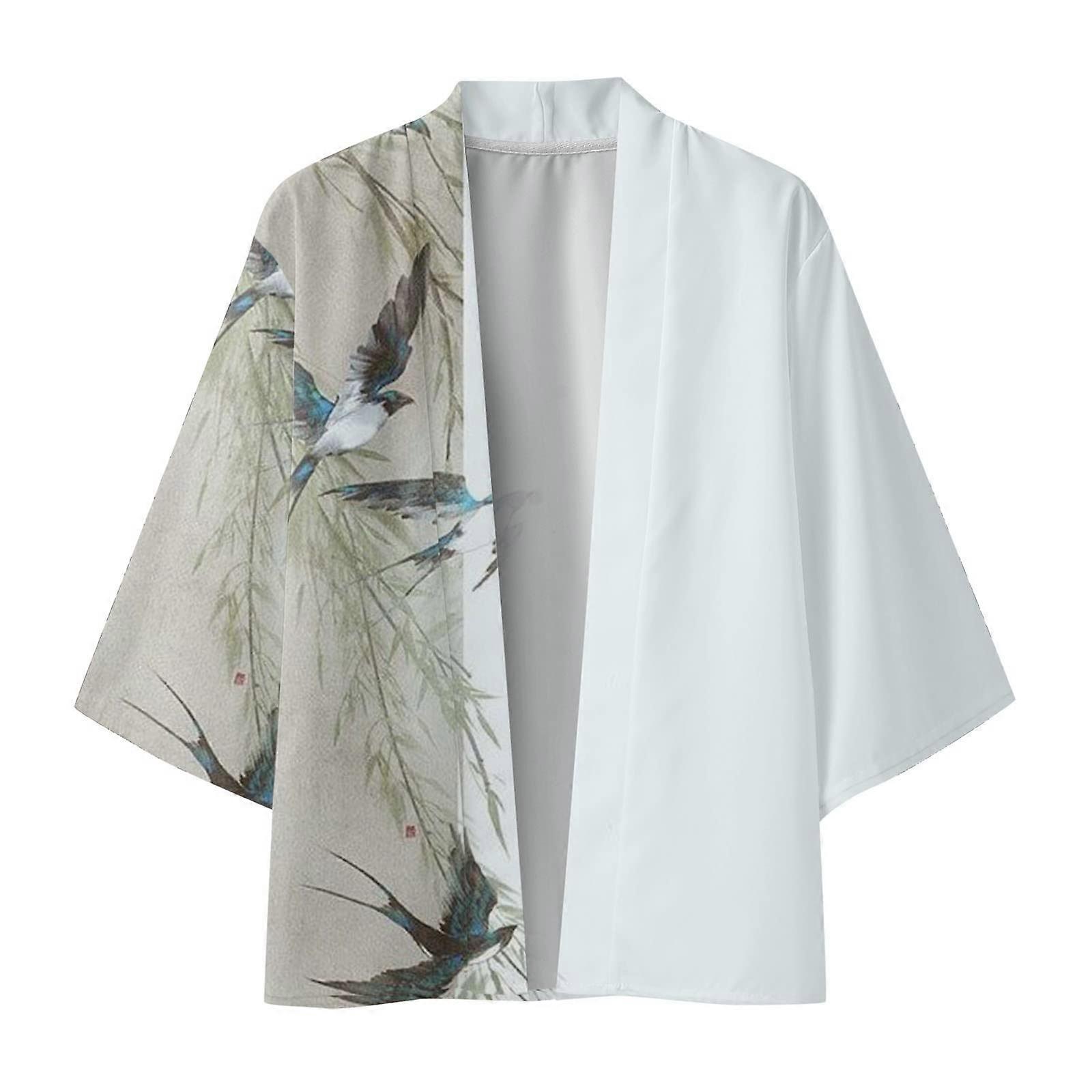 Kimono Unisex Cape Jacket Sun Protection Shirt Traditional Five Point Sleeve Green Size M Beachwear Summer Japanese