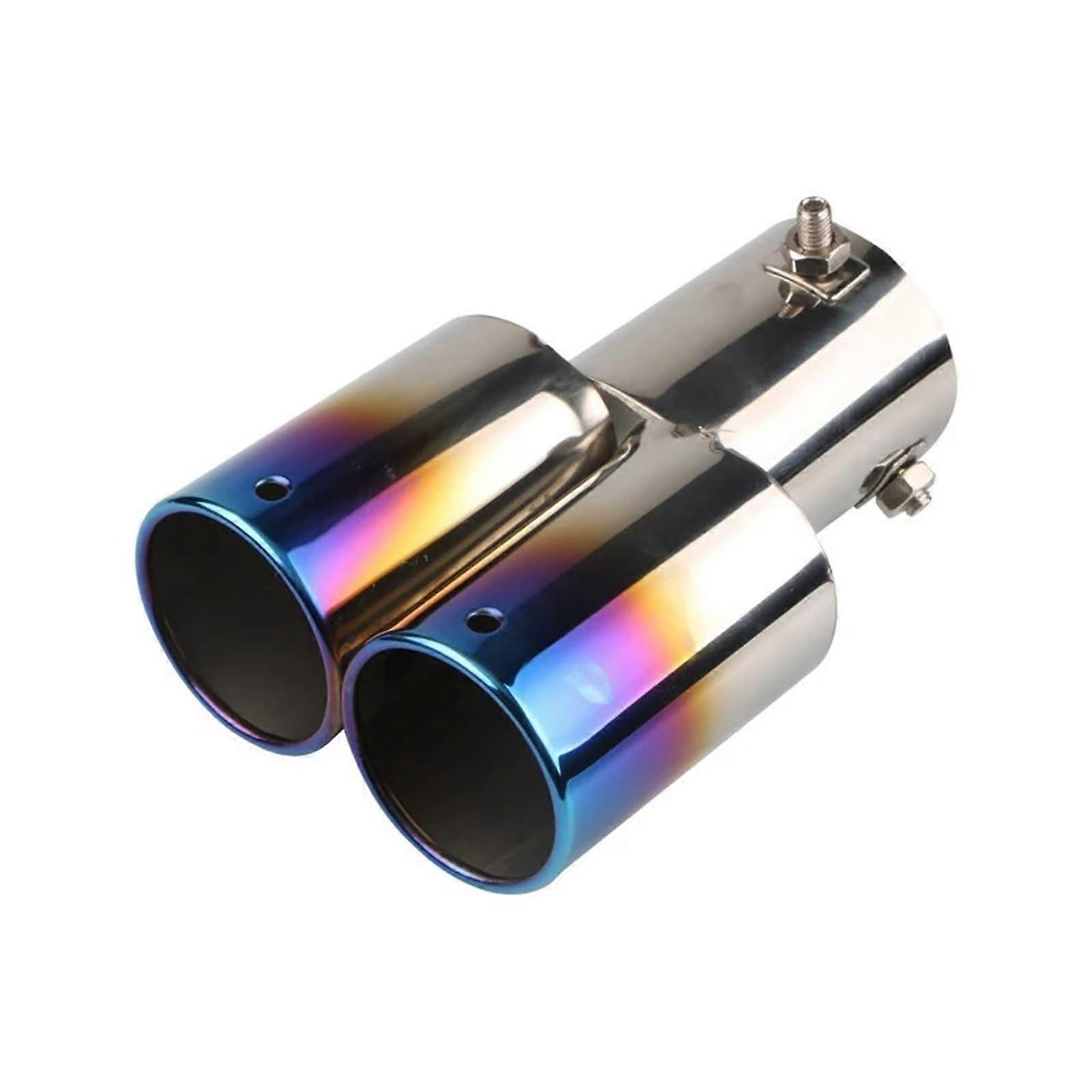 Muffler Tailpipe Universal Car Exhausts Muffler Tip Dual Pipe Chrome Exhaust Tips 1.52.3 Inch Inlet Straight Blue Flat