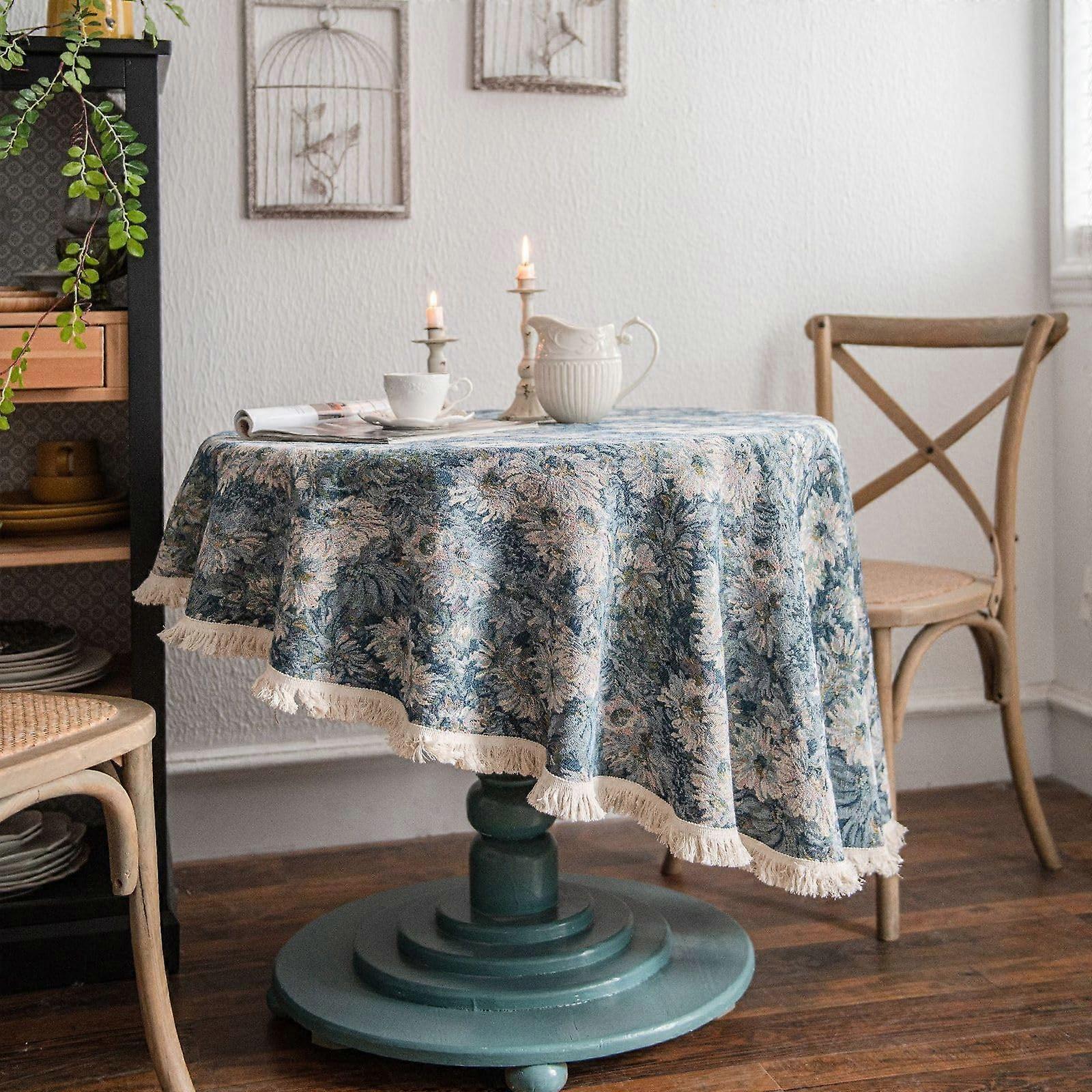 Washable Cotton Linen Tablecloth For Round Tables 150 Cm Wipeable With Tassels Dec Kitchen Dining