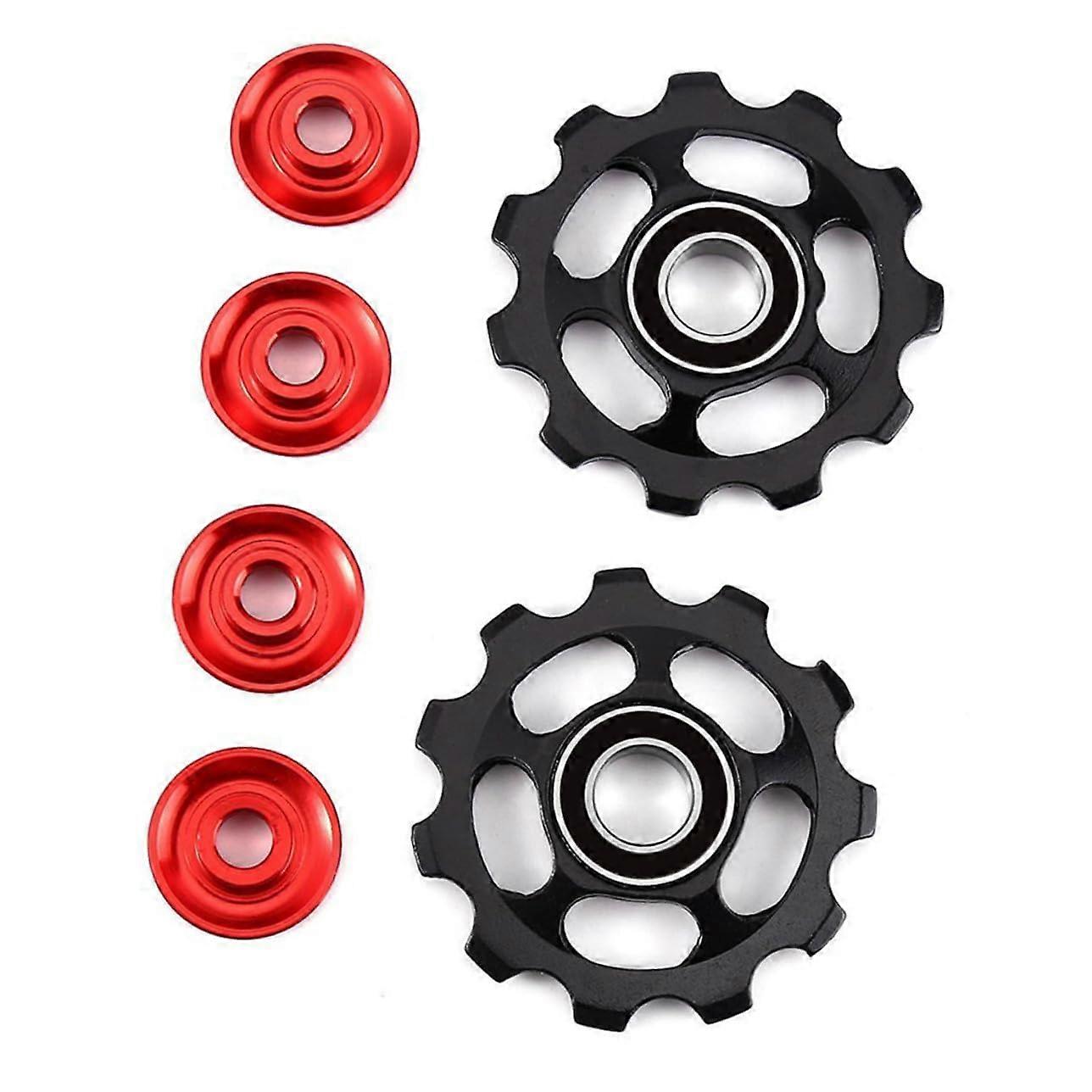 4Pcs Aluminum Alloy Bike Derailleur Pulley Rear Wheel Guide Roller For Mountain Bikes Replacement Parts Black And Red