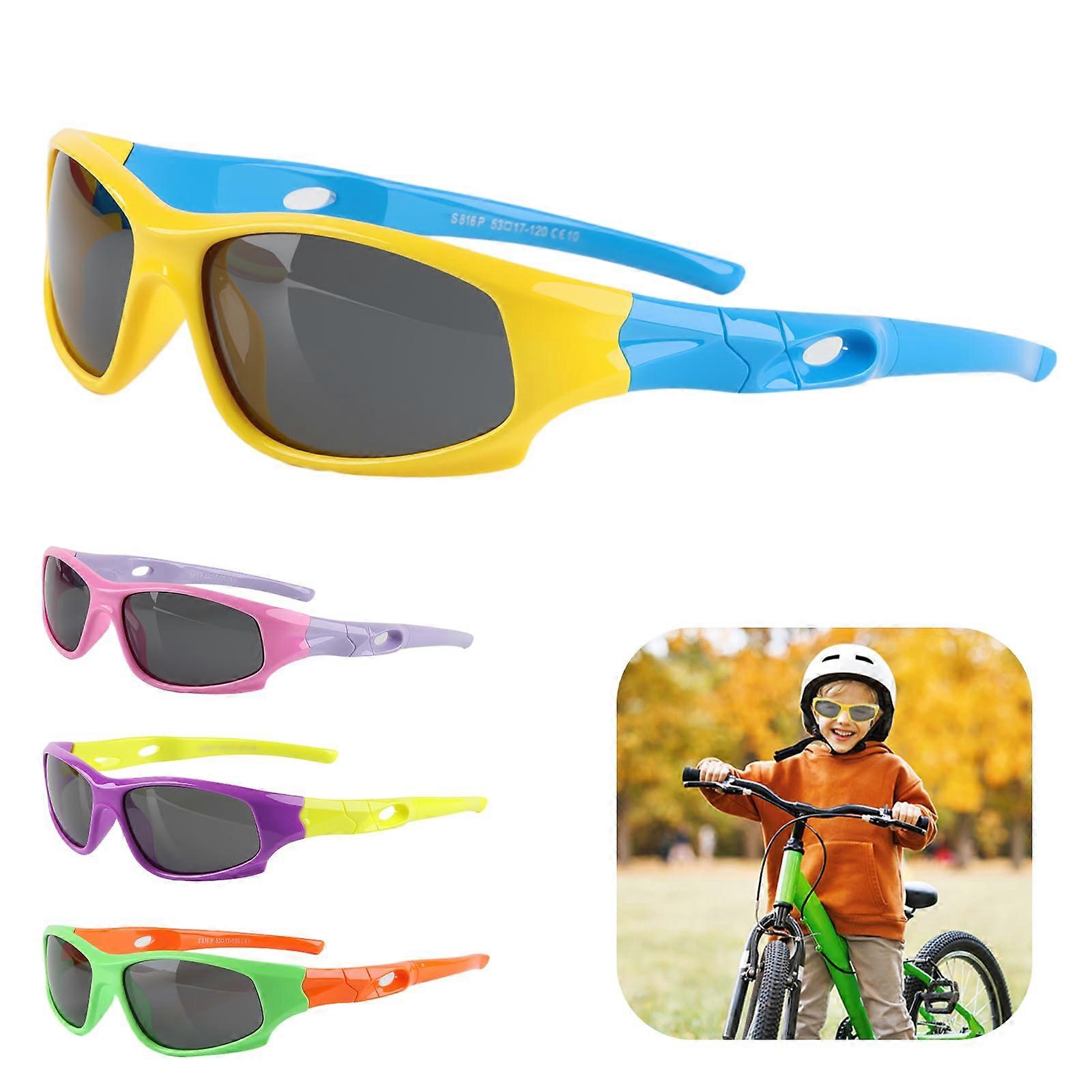 Children's Sunglasses Unisex Kids Polarised For Cycling 100% UV Protection BPA Pressure Fit Yellow Blue