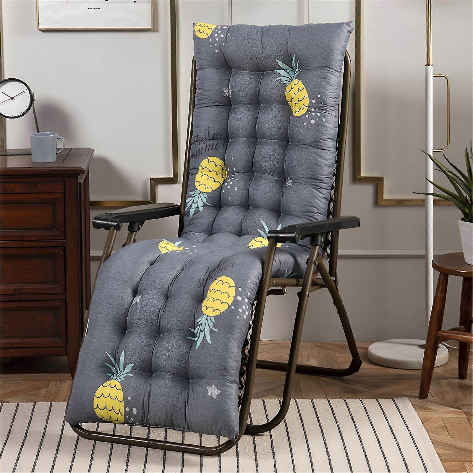 Sun Lounger Cushion Pineapple Print 48x155cm, Thickened Garden Chair Cushion With AntiSlip Straps, PP Cotton Filler