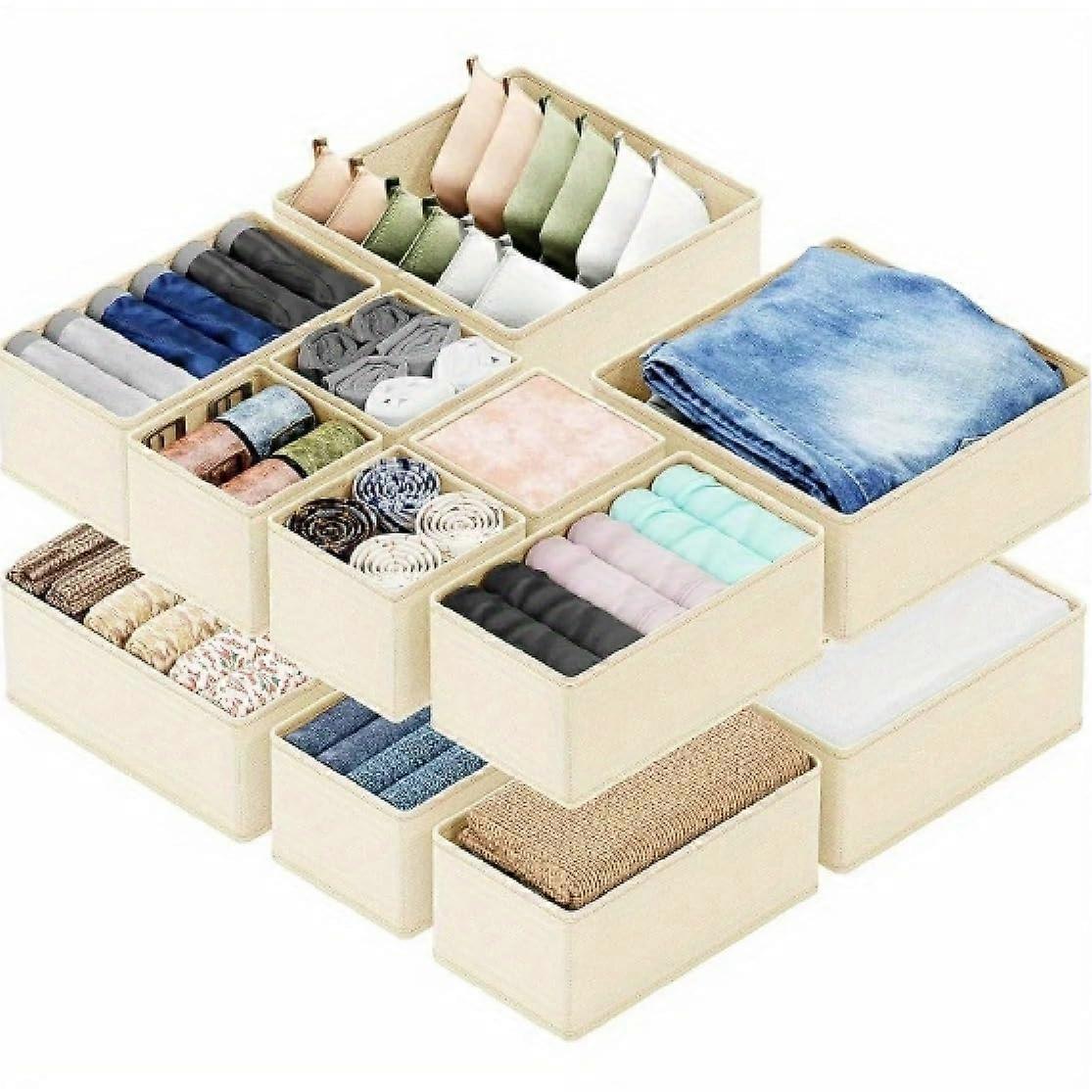 15 Pack Drawer Organiser Foldable Wardrobe Storage Fabric Clothes Boxes Beige For Underwear And Socks Drawers