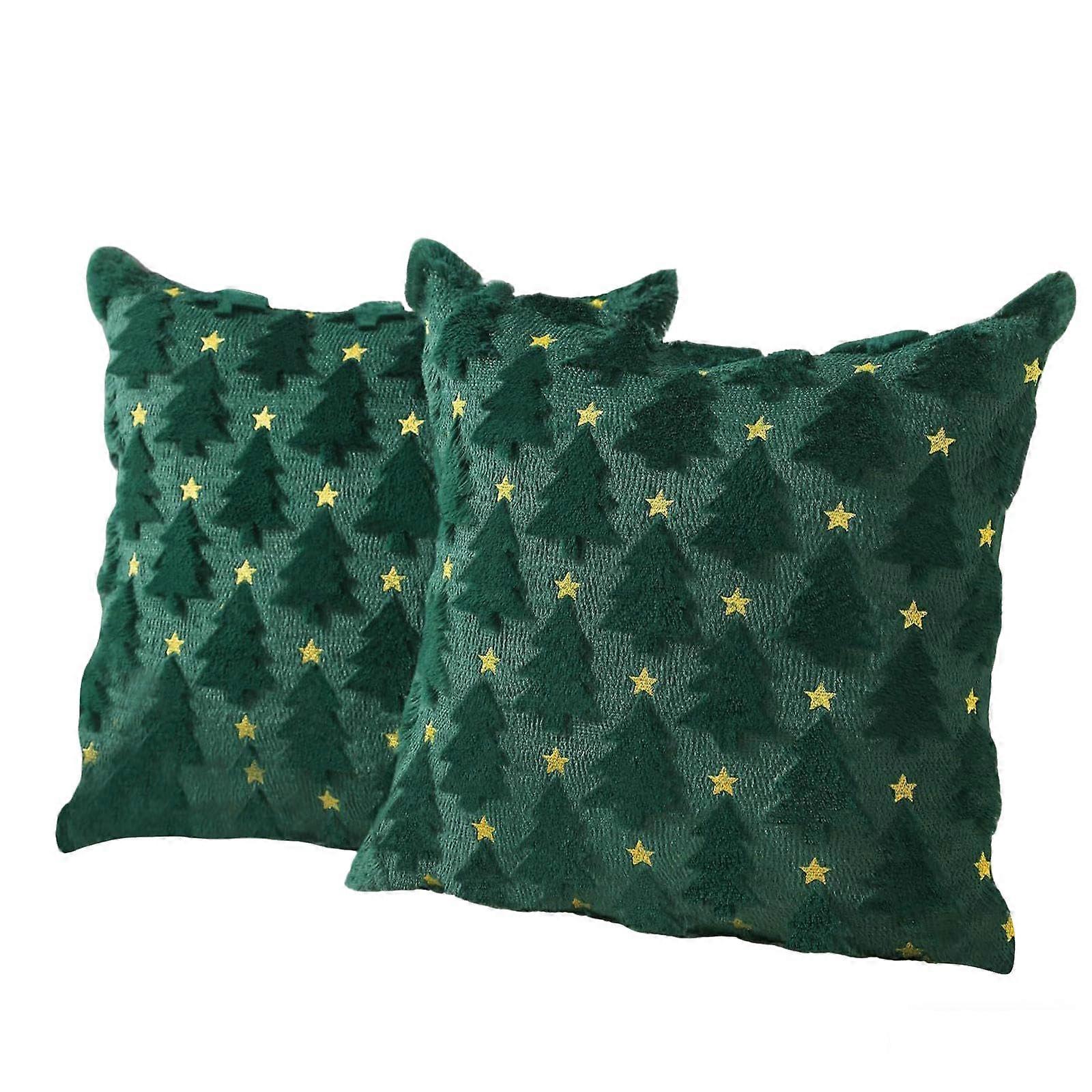 Christmas Cushion Covers 45x45 Cm Dark Green Plush Embroidered Sofa And Bedroom Cushion Covers Pack Of 1