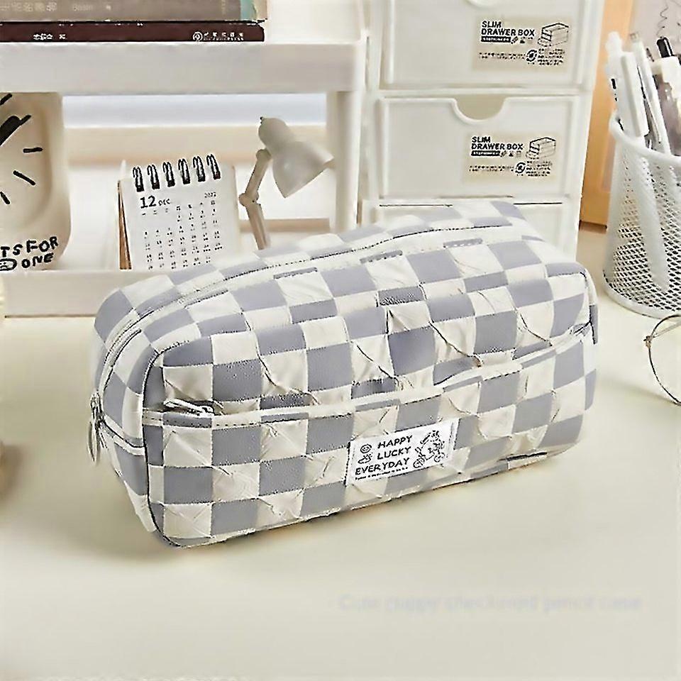 For High Capacity Design Jk School Pencil Case Stationery Bag Circular Double Zipper Grid Storage Of
