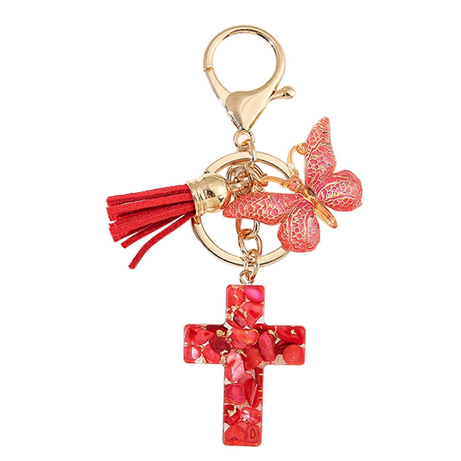 Vintage Cross-Butterfly Tassel Keychain For Women Versatile Keychain Bag Charm Handbag Decoration