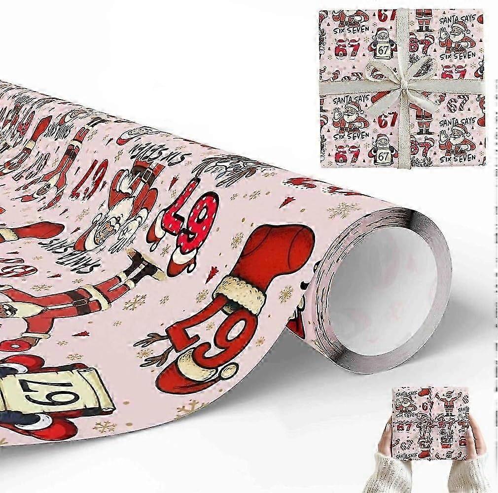 67 Meme Christmas Gift Wrap 450mm x 500mm, Kids Funny Six Seven Wrapping Paper, Unique Brain Rot Gen a Meme Holiday Gift Wrap Paper Roll, Festive Pre