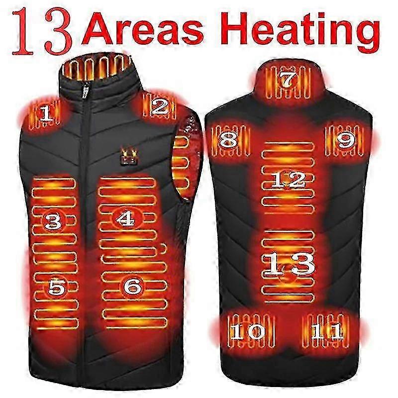 Men Usb Infrared 13 Heating Areas Vest Jacket Men Winter Electric Heated Vest Waistcoat For Sports Hiking Oversized 5xl 13 Areas Black -CN