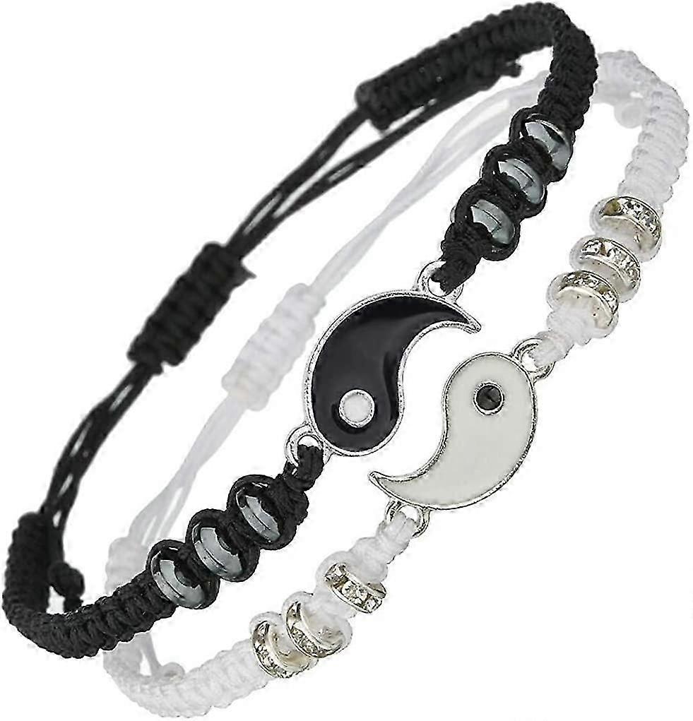 Best Friend Bracelets for 2 Matching Yin Yang Adjustable Cord Bracelet for Bff F, Happy H