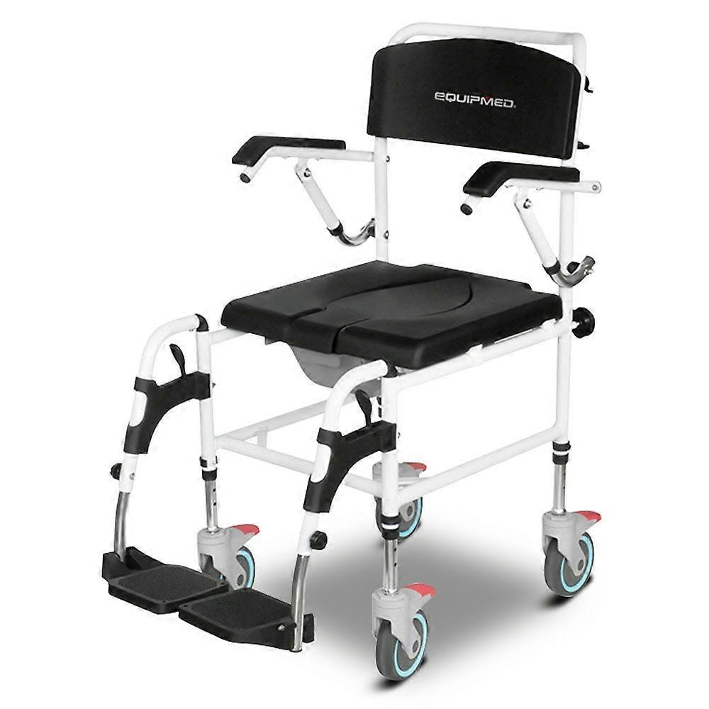 Equipmed Commode Shower Chair Over Toilet Or Bedside 136Kg Capacity Aluminium Frame With Wheels Black Commodes & Shower Chairs