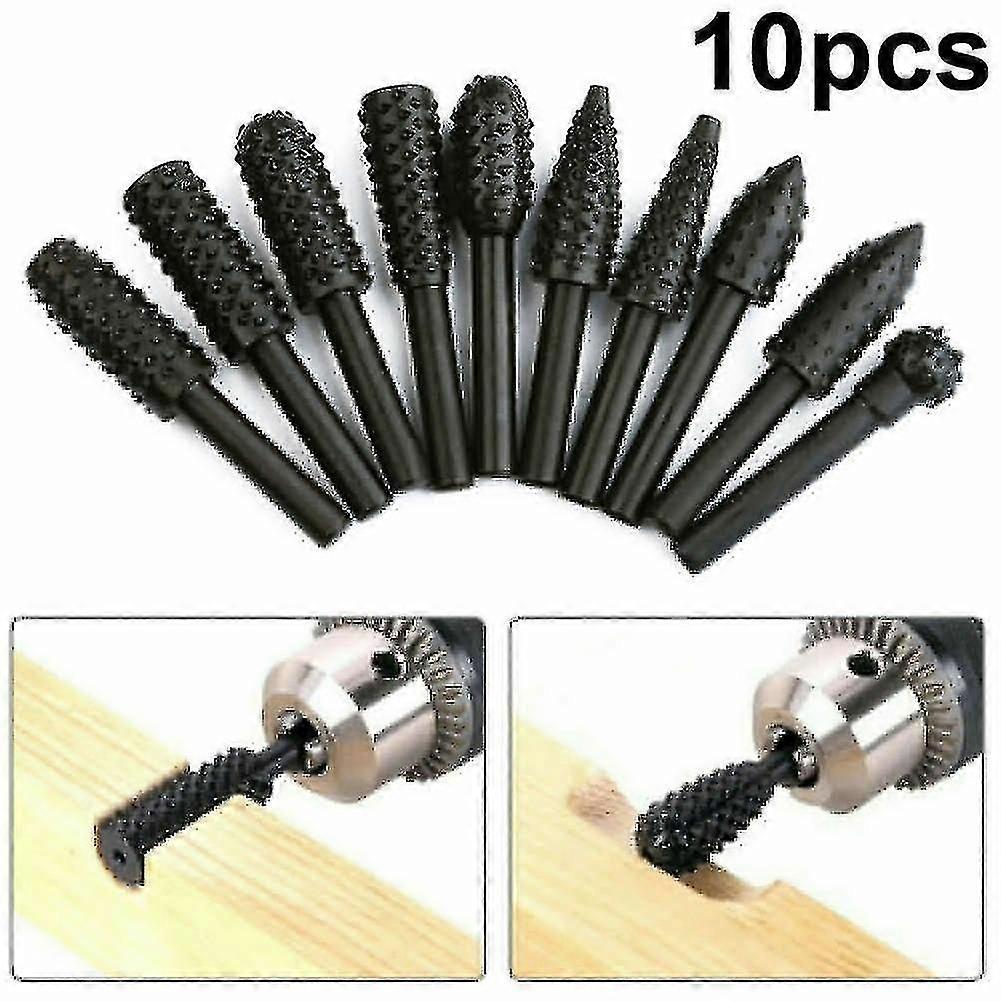 10-pack Steel Rotary Burr Set 1/8" Shank Wood Grinding Rasp Carbide Burrs Drill Bits Tools Set Carbide Burrs Drill Bits Tools Set Features: Carbide Burrs Drill Bits Tools Set high product processing quality, high finish, Carbide Burrs Drill Bits Tools Set can process out a various of high-precision mold cavity. Heavy duty rotary rasp set for power drills, air tools, and die grinders. Carbide Burrs Drill Bits Tools Set use fore grinding, polishing, carving, and burnishing wood surface. The Carbide Burrs Drill Bits Tools Set most commonly-used rasp configurations and styles: 1/8inch shanks to fit all electric and cordless drills. Carbon steel High-carbon steel tempered and hardened for long-life cutting power, Carbide Burrs Drill Bits Tools Set makes all you are grinding needs easier and more convenient. Carbide Burrs Drill Bits Tools Set made from high quality Carbon steel High-carbon steel tempered and hardened for long-life, Use for Grinding, Polishing, Carving, Burnishing wood surface. Carbide Burrs Drill Bits Tools Set Specification: Carbide Burrs Drill Bits Tools Set Material:45 steel Carbide Burrs Drill Bits Tools Set Color: Black Carbide Burrs Drill Bits Tools Set Size:Shank diameter: 3 mm / 0.125 in Carbide Burrs Drill Bits Tools Set Weight:1.8oz / 50g Package Includes: 10 x Carbide Burrs Set