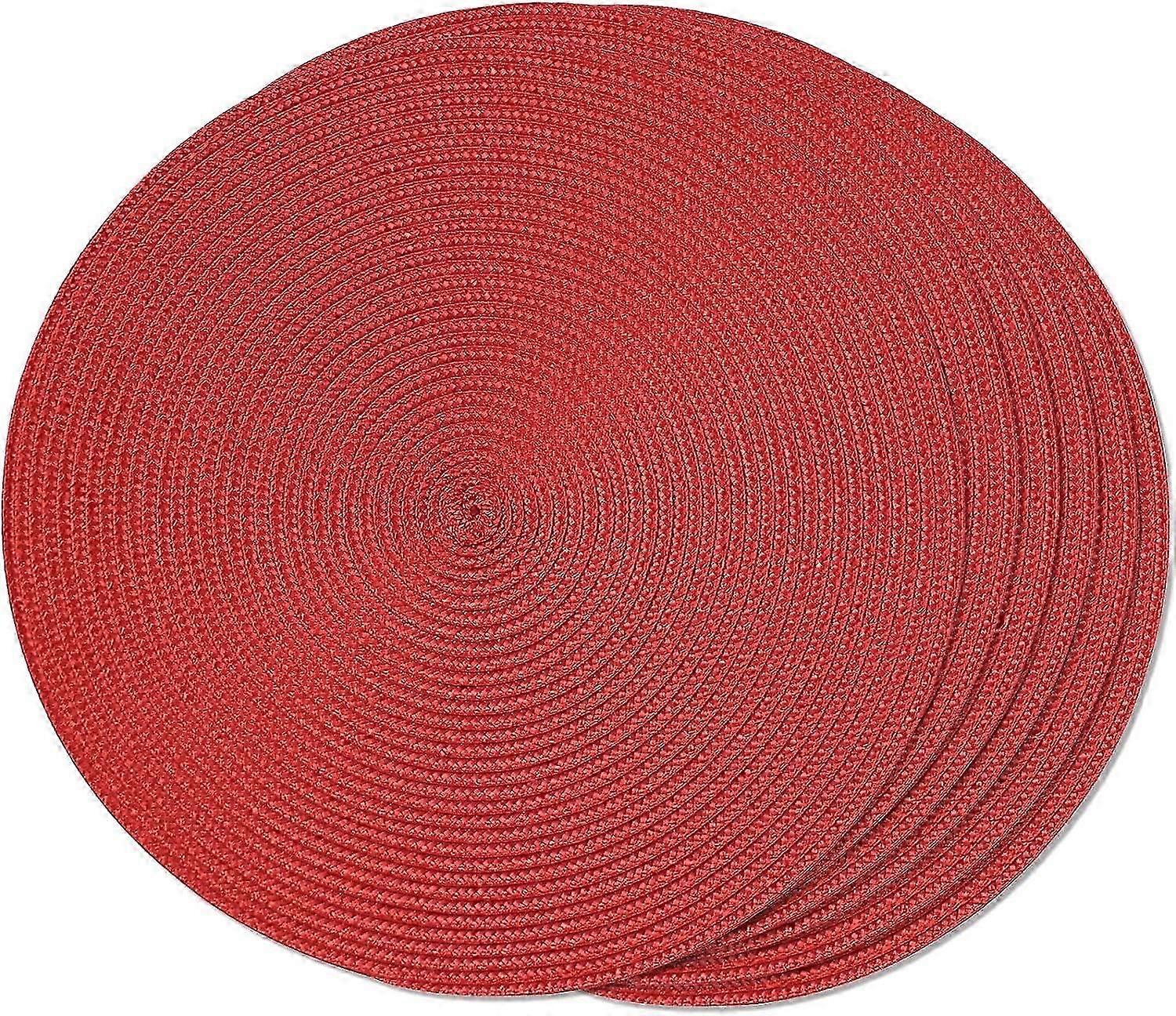 Round Braided Placemats Set of 6 Table Mats for Dining Tables Woven Washable Non-Slip Place mats 15 inch for Christmas Decoration (red, 6pcs)