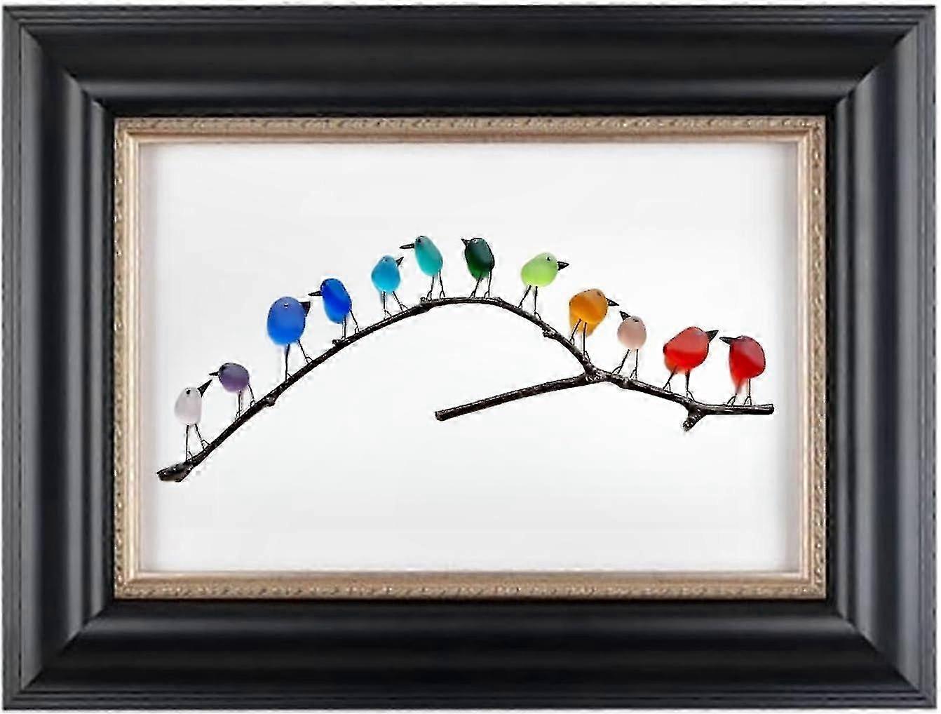 Handmade Rainbow Bird Wall Art, Unique Sea Glass Decor, Driftwood Picture Gift