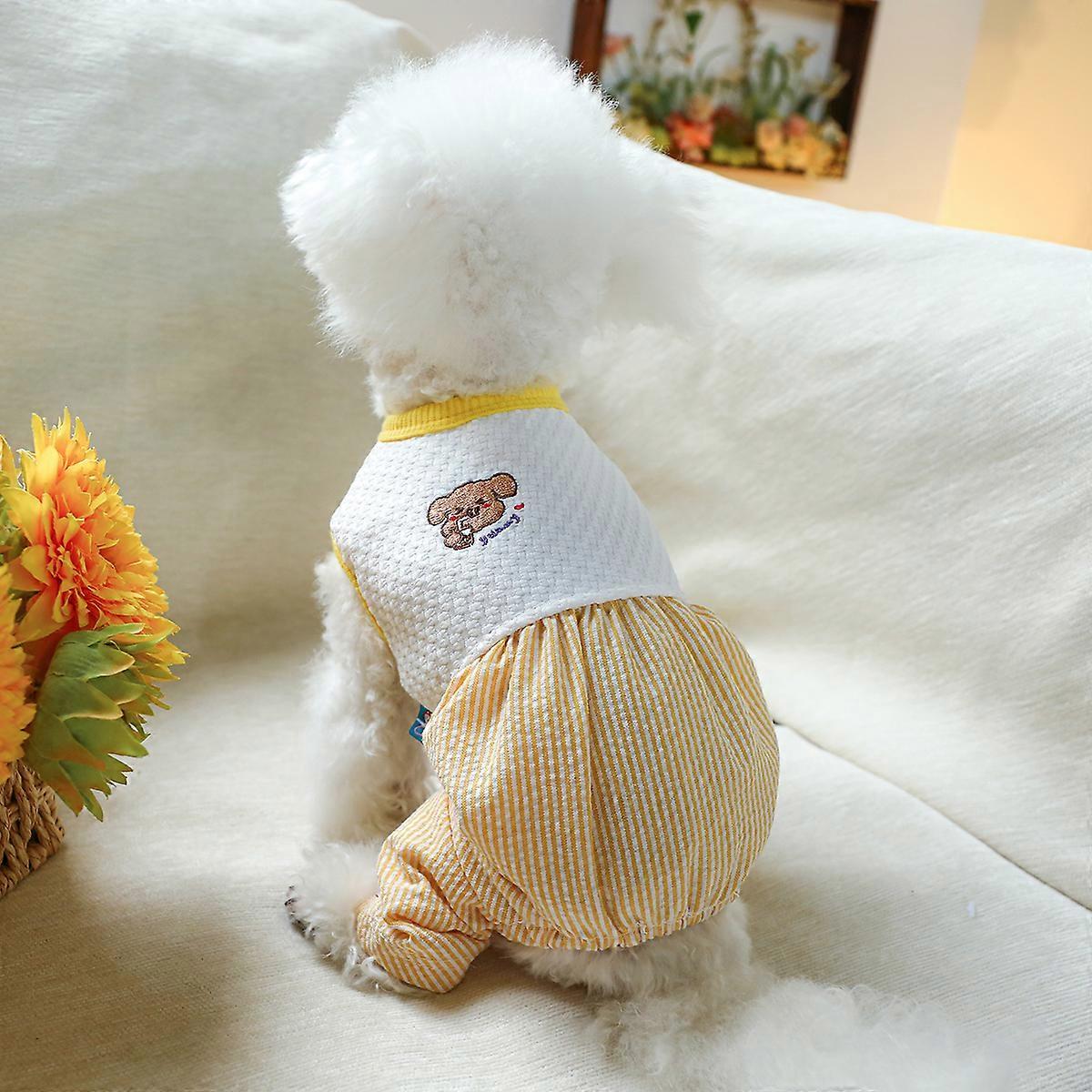1PC Pet Clothes Dog Summer Four-legged Onesie Yellow Striped Splicing Handsome Overalls