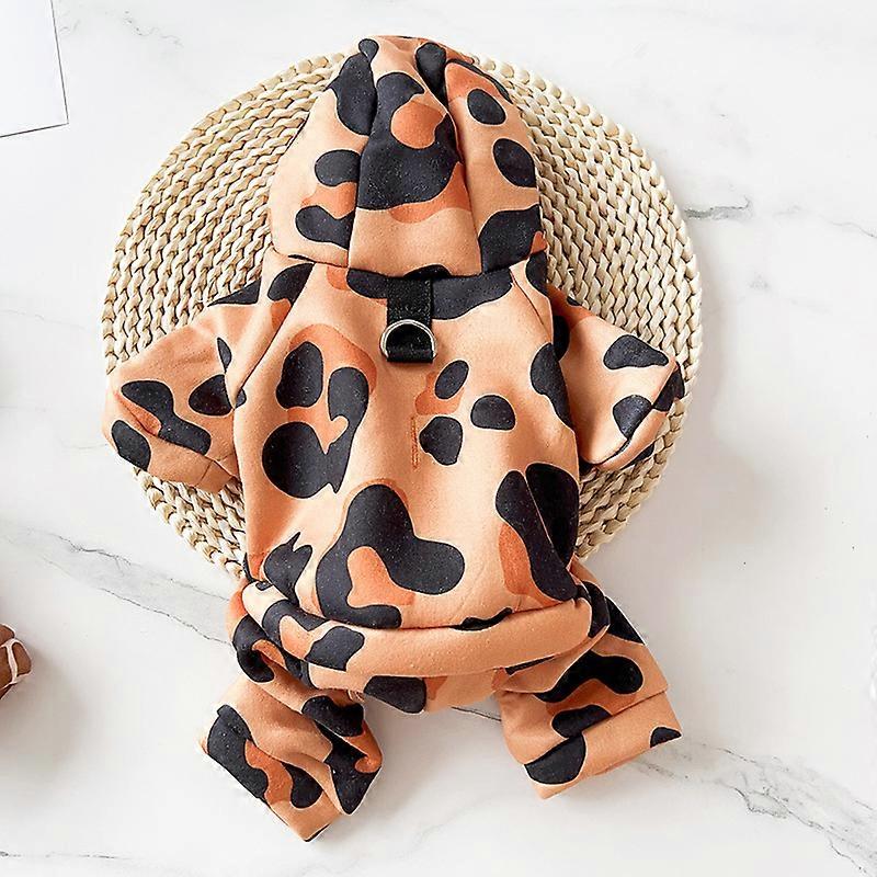 Leopard Print Pet Puppy Dog Four-legged With hooks Hoodie Clothes Small Dog spring and Winter Warm dog cat pet Clothes