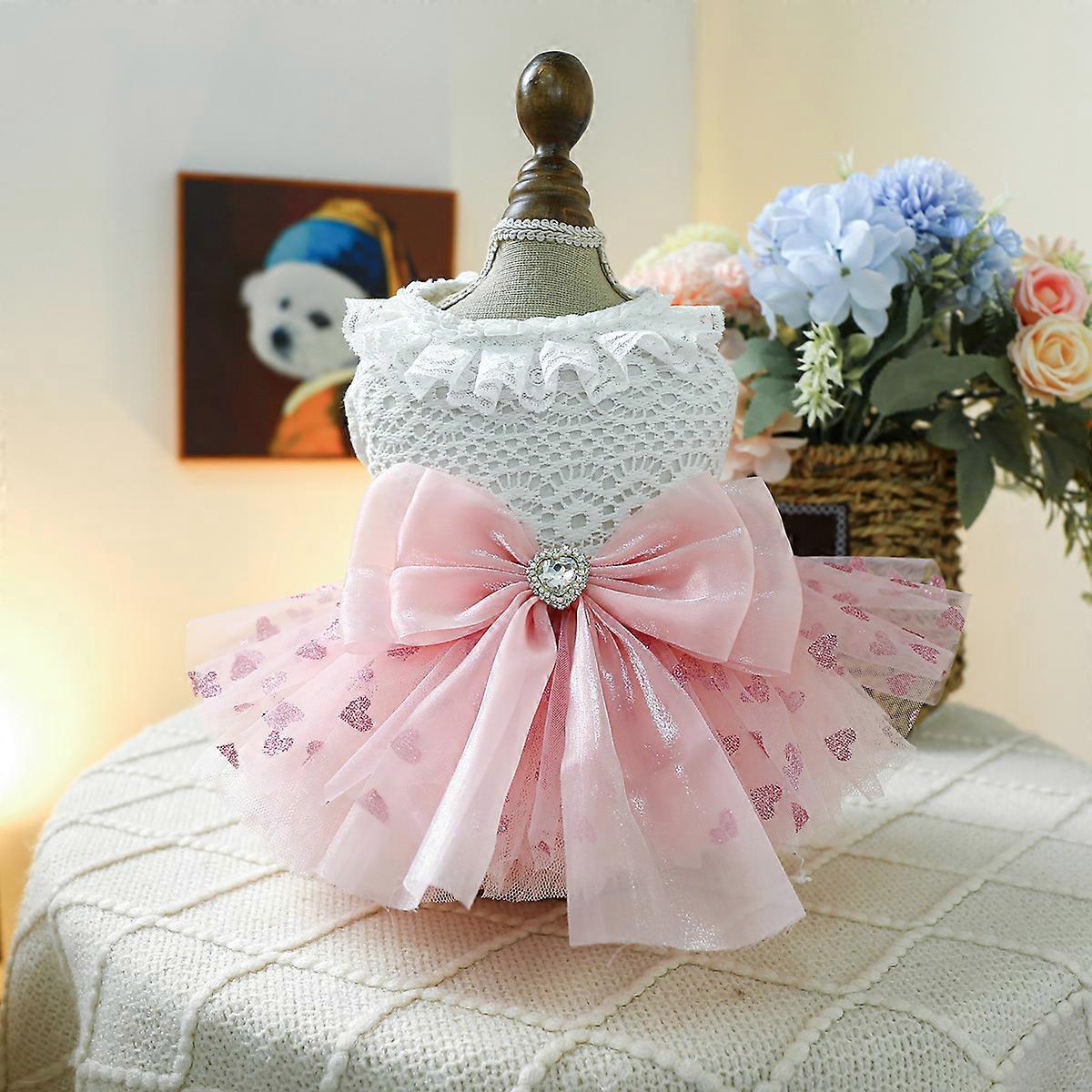 1PC Pet Clothing Spring and Autumn Pink Heart Puff Skirt Wedding Dress Princess Dress Suitable for Small and Medium sized Dogs