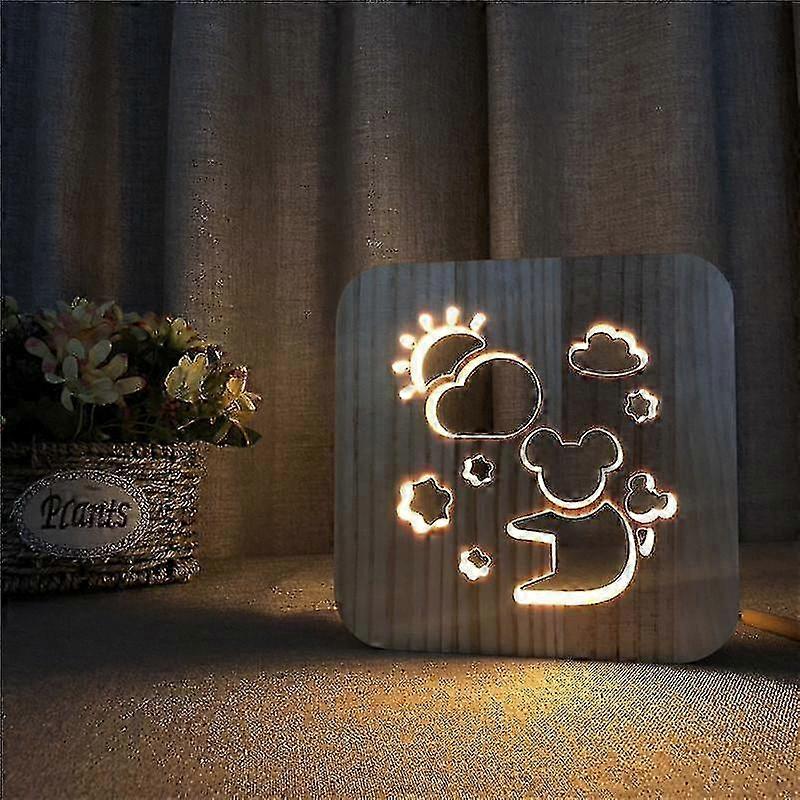 New Led Wooden Carving Night Light Usb Power Cloud Pattern T1829w