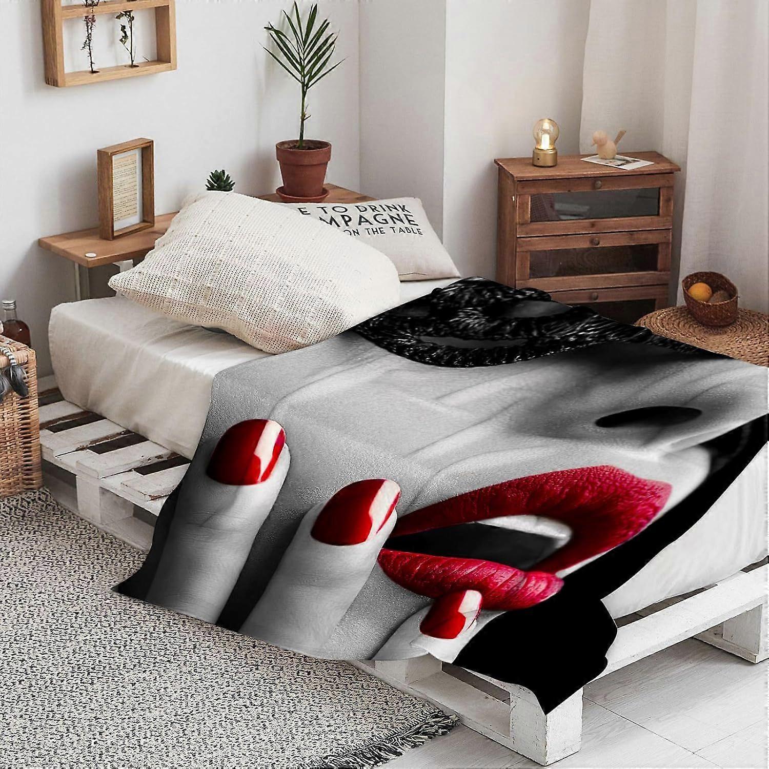 Warm Soft Sexy Girl Modern Fashion Hot Sexy Women with Black Mask and Red Nail Throw Blanket,Winter Warm Sofa Bed Throw Bed Picnic Blanket Throw Over