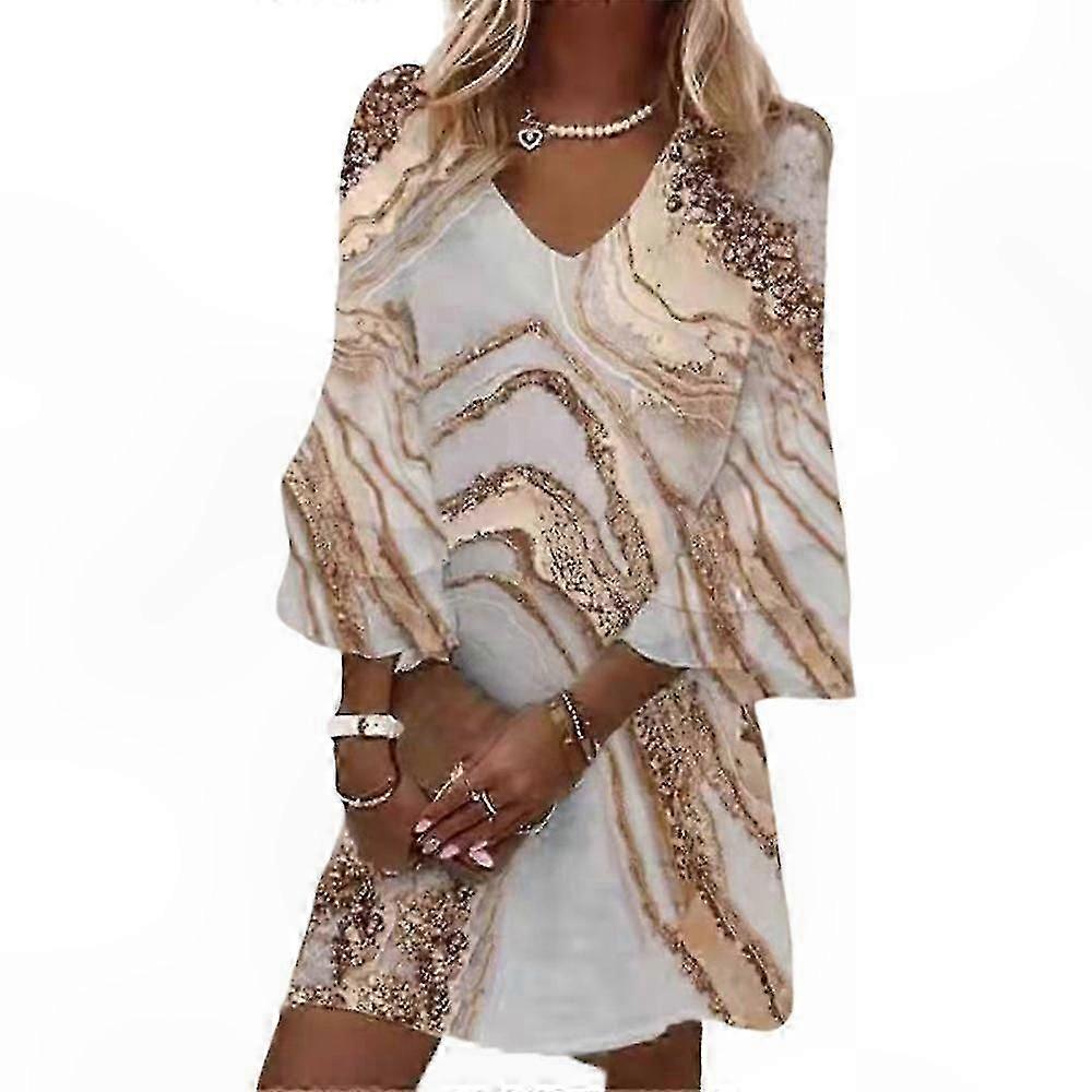 V-neck Three-Quarter Sleeve Summer Beach Dress for Women