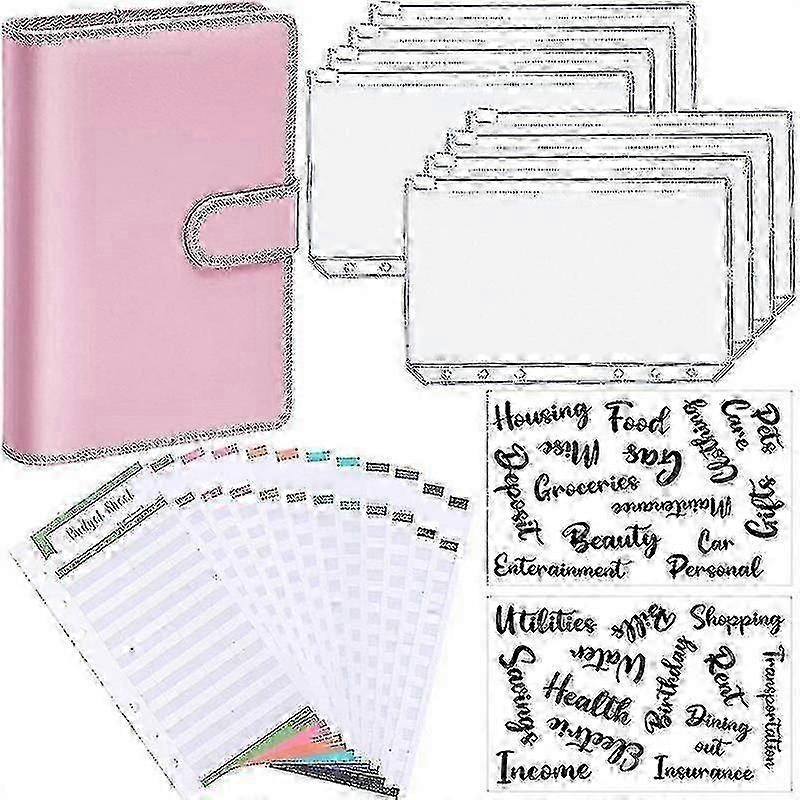 A6 Binder Budget Planner with 6-Hole Pockets, Plastic Zipper Envelopes in Pink for Money Saving Organisation