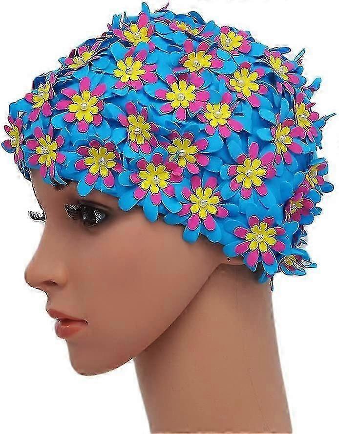 Retro Floral Petal Swim Cap for Women, Stylish Bathing Cap with Vintage Design for Pool and Beach Swimming