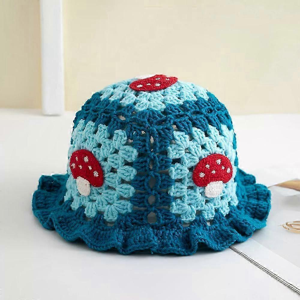 Pink Knitted Bucket Hat with Strawberry Design,Cute Ruffled Crochet Hat for Women