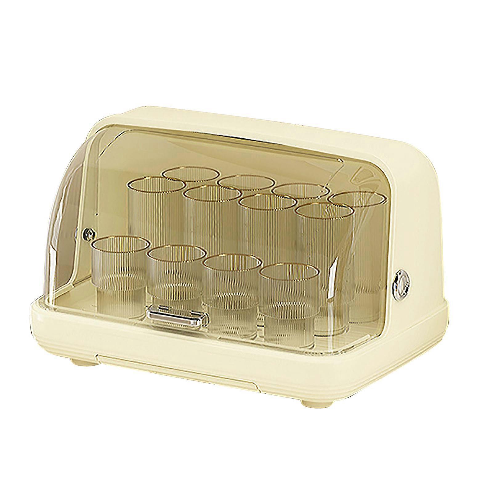 Transparent Large Cups Storage Box 38.5x27x25cm Dustproof Teacups Rack with Drainage Desktop Organizer Cream Color