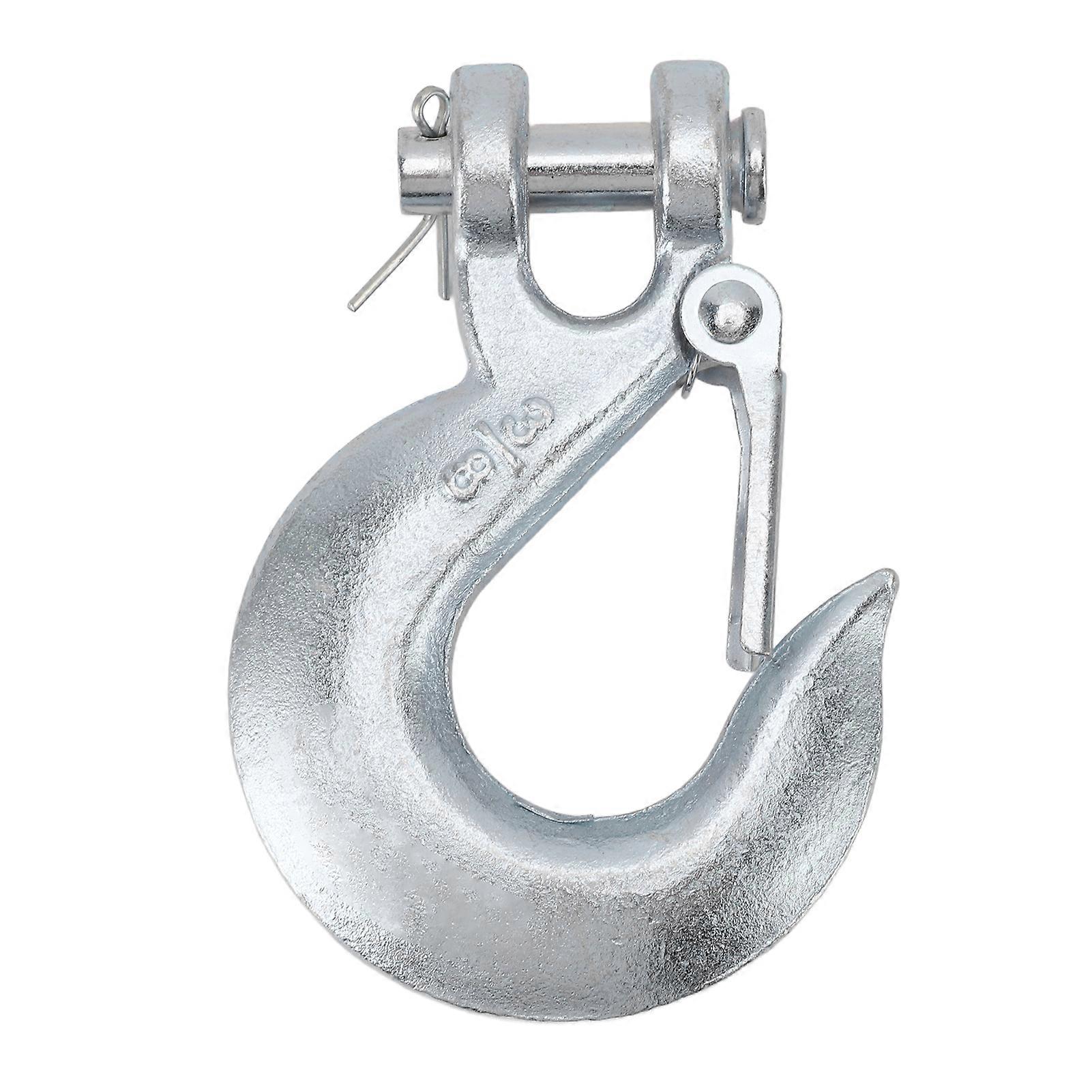 3/8 Inch Safety Chain Hook 18000lb Load Capacity Zinc Alloy Steel Clevis Slip Hook with Safety Latch for Trailer Truck Agricultural Use White