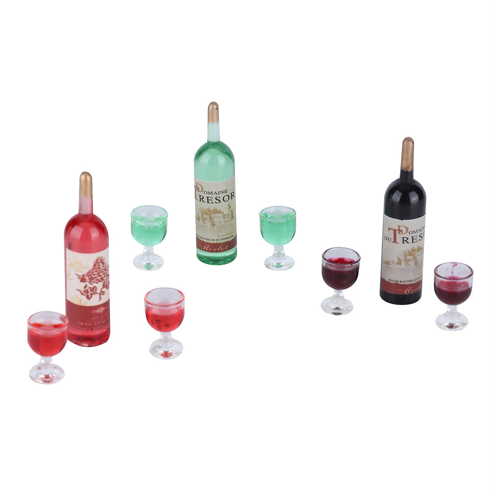 Miniature Dollhouse Wine Bottle Set for Dollhouse Decoration, Pretend Play Mini Toy Set for Party Kitchen Game Fun Accessory