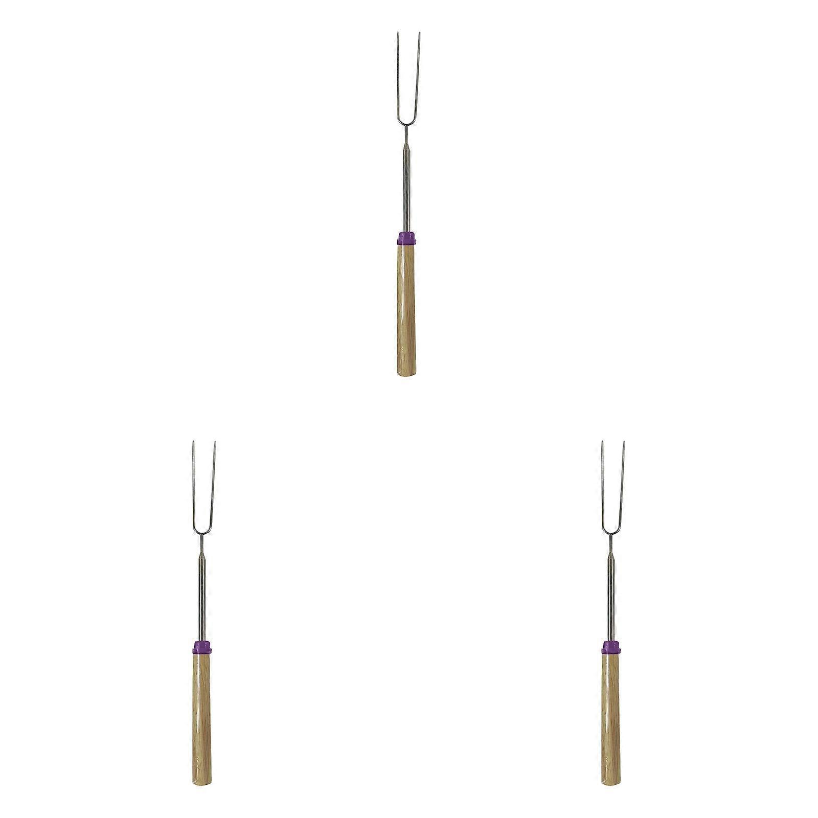 Retractable Barbecue Fork BBQ Hot Dog Fork Stainless Steel Barbecue Fork Cotton Sugar Barbecue Fork *3PCS