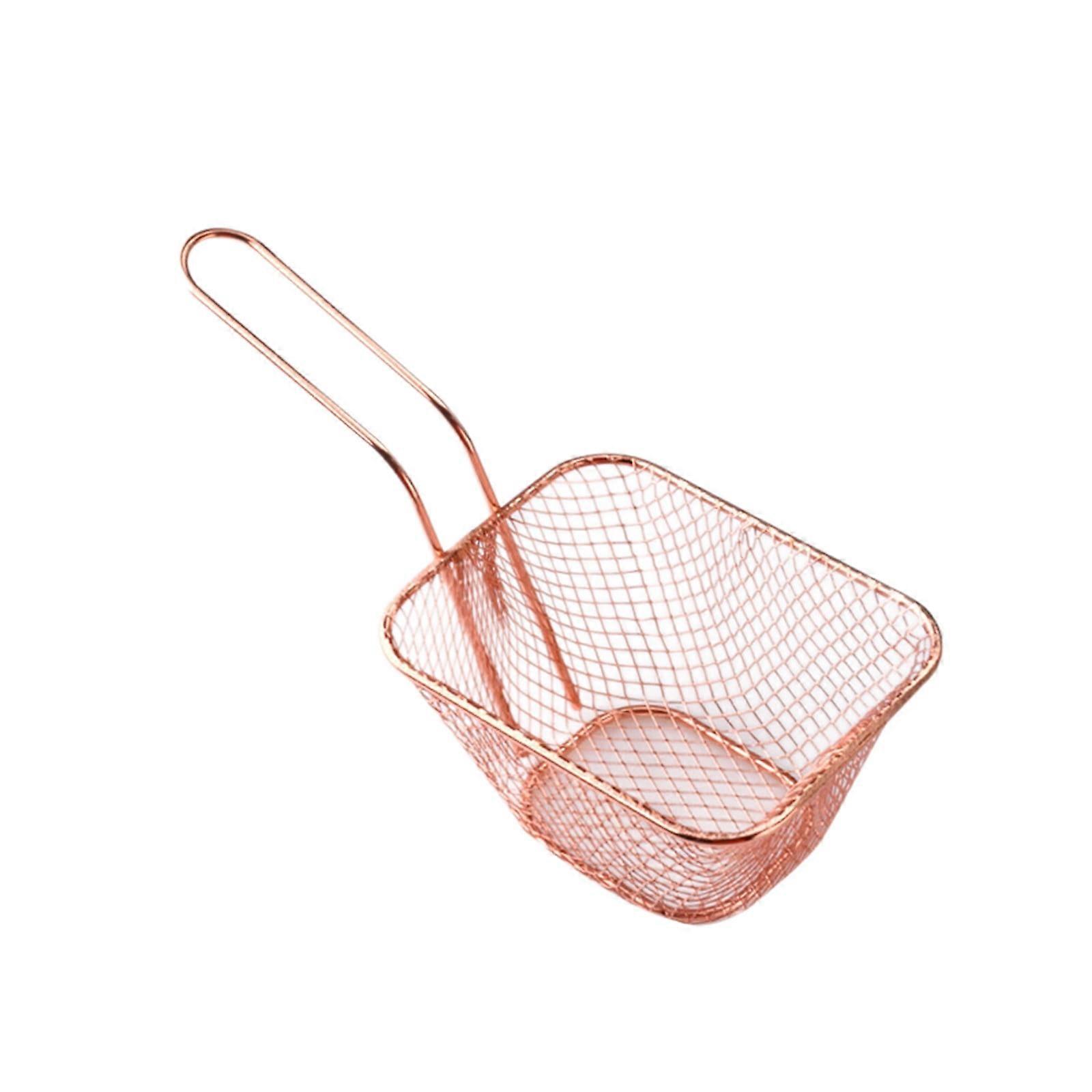 Mini Square Fry Basket, Stainless Steel with Handle, Reusable Fries Holder for Home, Rose Gold (Compatible with mini deep fryers)