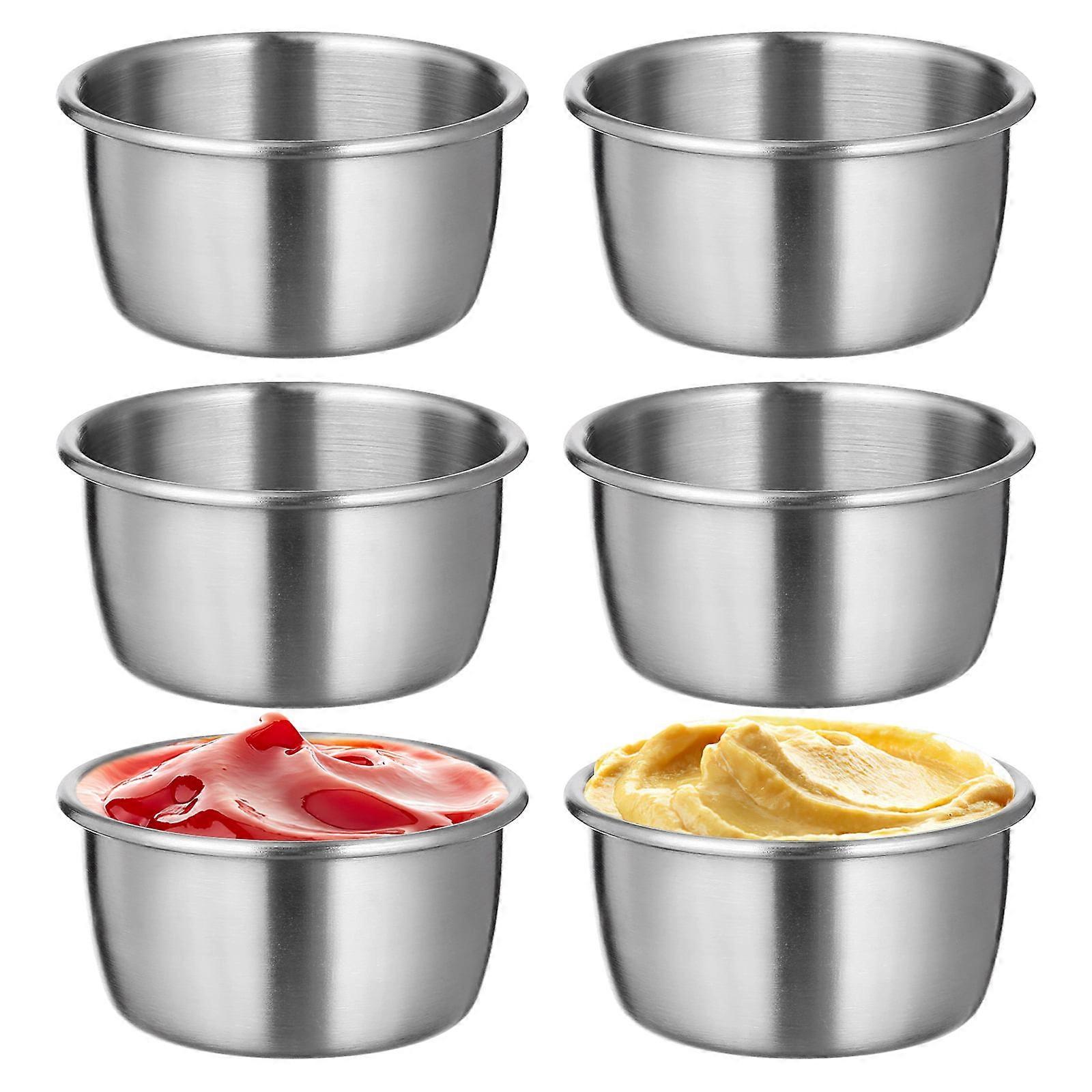 Description The sauce containers is made of stainless steel, firm and durable; you can wash them after every usage for next time; They' re environmentally friendly; safe and non-, drop resistance and anti- extrusion; Perfect for sauces cocktail sauce; tartar sauce, butter, ketchup, mayonnaise, and ranch dressing; Features - Color: Silver. - Material: Stainless steel; - Size: Approx. 5.5 x 5.5 x 3cm; - Sauce cup features sleek stainless steel look with a sturdy constructions, that give them a modern appeal; - Durable restaurant, bar and catering service tableware, never worry about debris, cracks, nicks and scratches; - Can be used for condiments, dipping sauce, sauces, fruits, nuts, olives, custards, jellies; - for any sauce dipping for any dining occasion, whether for outdoor barbecues; picnics or indoor home dining; Package Including 6 x dipping bowls Can be used for condiments, dipping sauce, sauces, fruits, olives, nuts, custards, jellies, etc; Warm Tip: Dear buyer, due to lighting effect, monitors brightness, manual measurement, etc., there could be some slight differences in the color and size between the photo and the actual item. Sincerely hope that you can understand! Sauce cup features sleek stainless steel look with a sturdy constructions that give them a modern appeal; Durable restaurant, bar and catering service tableware, never worry about debris, nicks, cracks and scratches; Ideal for any sauce-dipping for any dining occasion, whether for outdoor barbecues, picnics or indoor home dining;