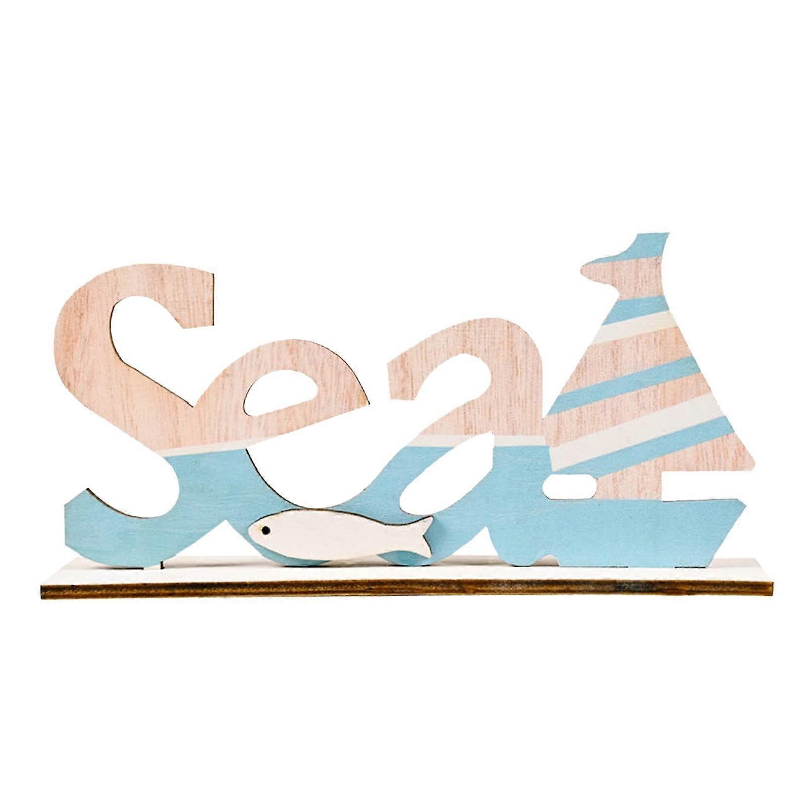 Begine Mediterranean Style Wooden Nautical Ornament, Sea Plaque Board Table Decor, Coastal Home Decor, Blue Desktop & Graduation Ornament