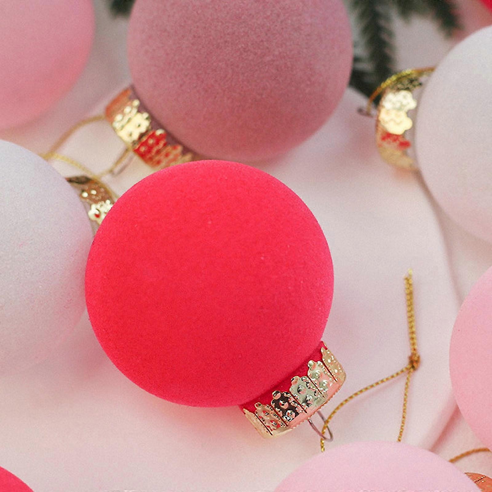12 Pcs 2.36" Velvet Flocked Christmas Tree Ornaments - Plastic Xmas Decorative Hanging Balls, Holiday Decor in Clearance