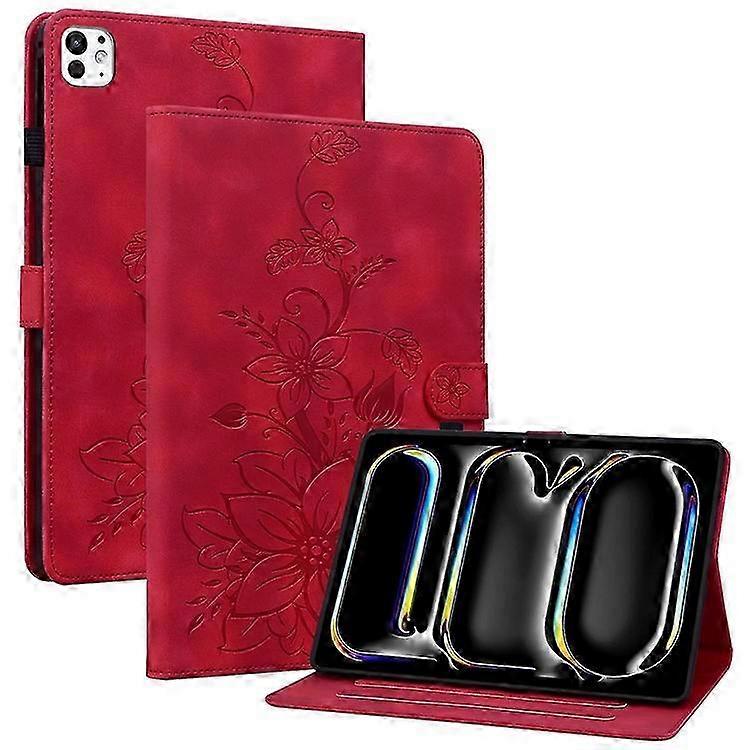 Premium iPad Pro 11 (2024) Case with Lily Flower Design PU Leather Drop Protection