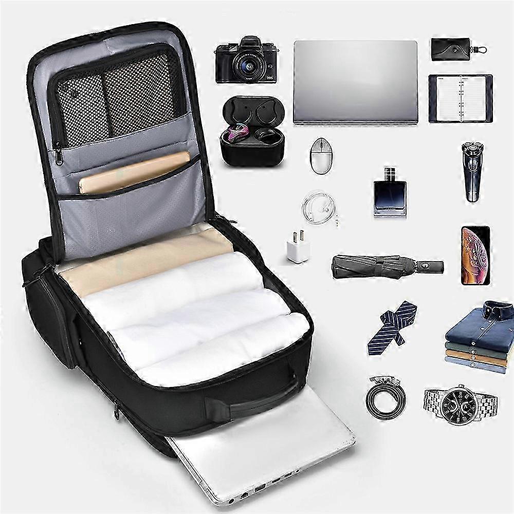 [Spacious Design] Featuring a 31x18x42cm size and multiple compartments, this backpack offers ample storage for all your business essentials. [Laptop Protection] Dedicated laptop compartment provides secure storage and protection against bumps and shocks during travel. [Easy Access] 180° box-style opening allows for convenient access to the main compartment, making organization and retrieval effortless. [Weather Resistant] Water-repellent coating on the surface protects your belongings from light rain and accidental spills. [Comfort-Focused] S-shaped shoulder straps and honeycomb back padding ensure optimal comfort and ventilation during extended wear. [Travel-Friendly] Luggage strap design allows for easy attachment to rolling suitcases, reducing strain during long journeys.Specifications: Material: Nylon fabric Dimensions: 31x18x42cm Weight: 995g Compartments: Main compartment, mesh pocket, laptop compartment, partition pockets, 2 side zipper pockets, 2 front zipper pockets, 2 side partition pockets, 2 ID pockets, 2 pen holders, back zipper pocket, front magnetic pocket Features: Box-style opening, water-resistant coating, S-shaped shoulder straps, honeycomb back padding, luggage strap
