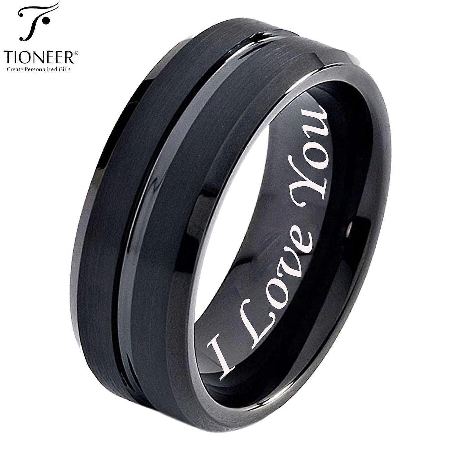 Tioneer Tungsten Carbide Black Band Groove Center Wedding Band Ring Men Women Diamond Engraving 8mm