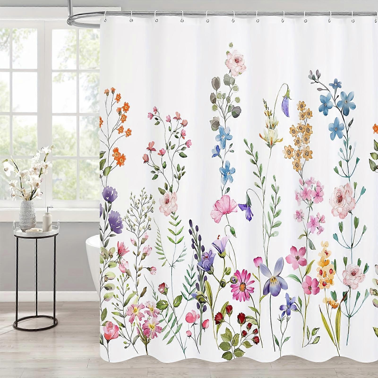 AUMIY 1pc Retro Flower Printed Waterproof With Hooks Decorative Bathtub Partition Curtain Bathroom Accessories Bathroom Decorations
