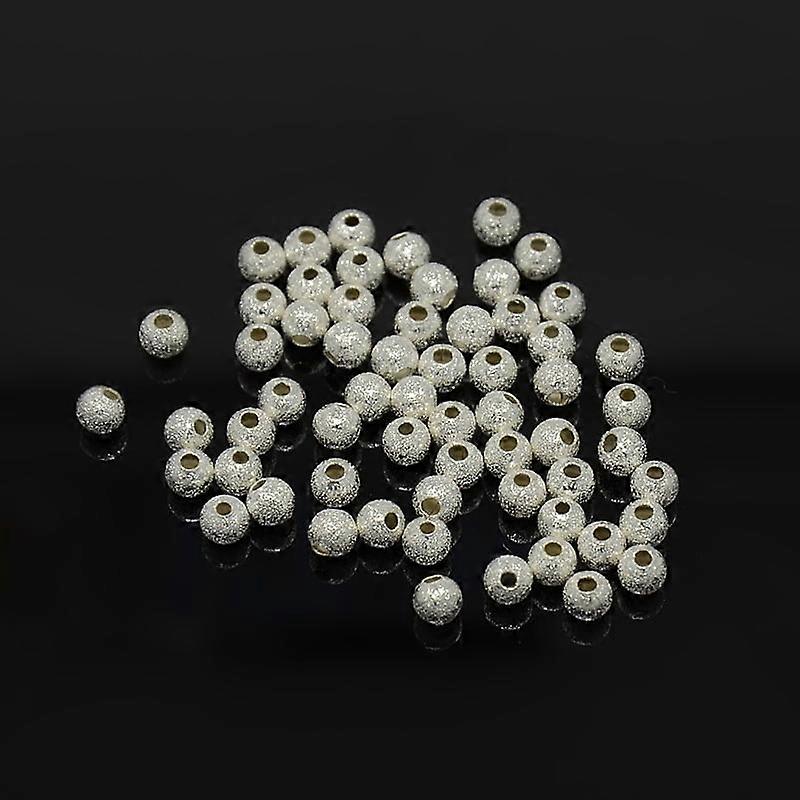 200pc 4mm Silver Color Plated Brass Round Textured Beads hole: 1mm
