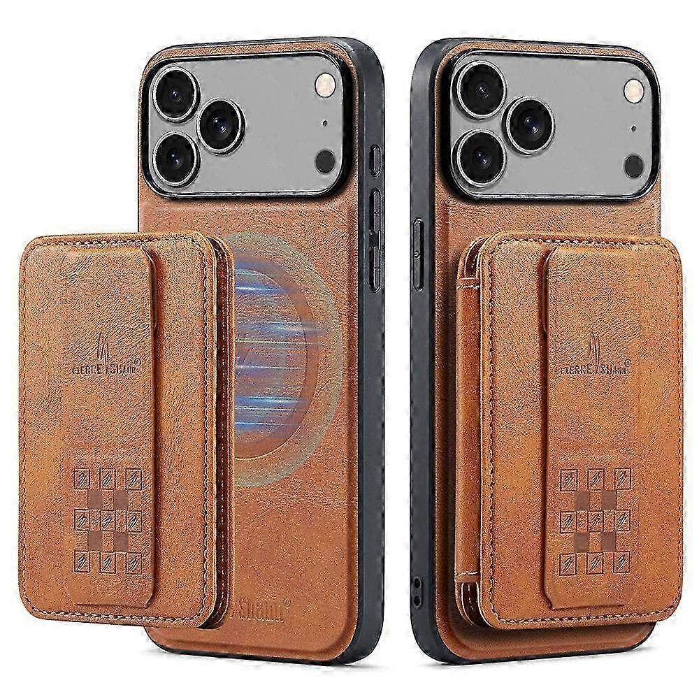 Premium FIERRE SHANN 028 Leather Back Case with Kickstand & Magnetic Card Slots for iPhone 17 Pro Max